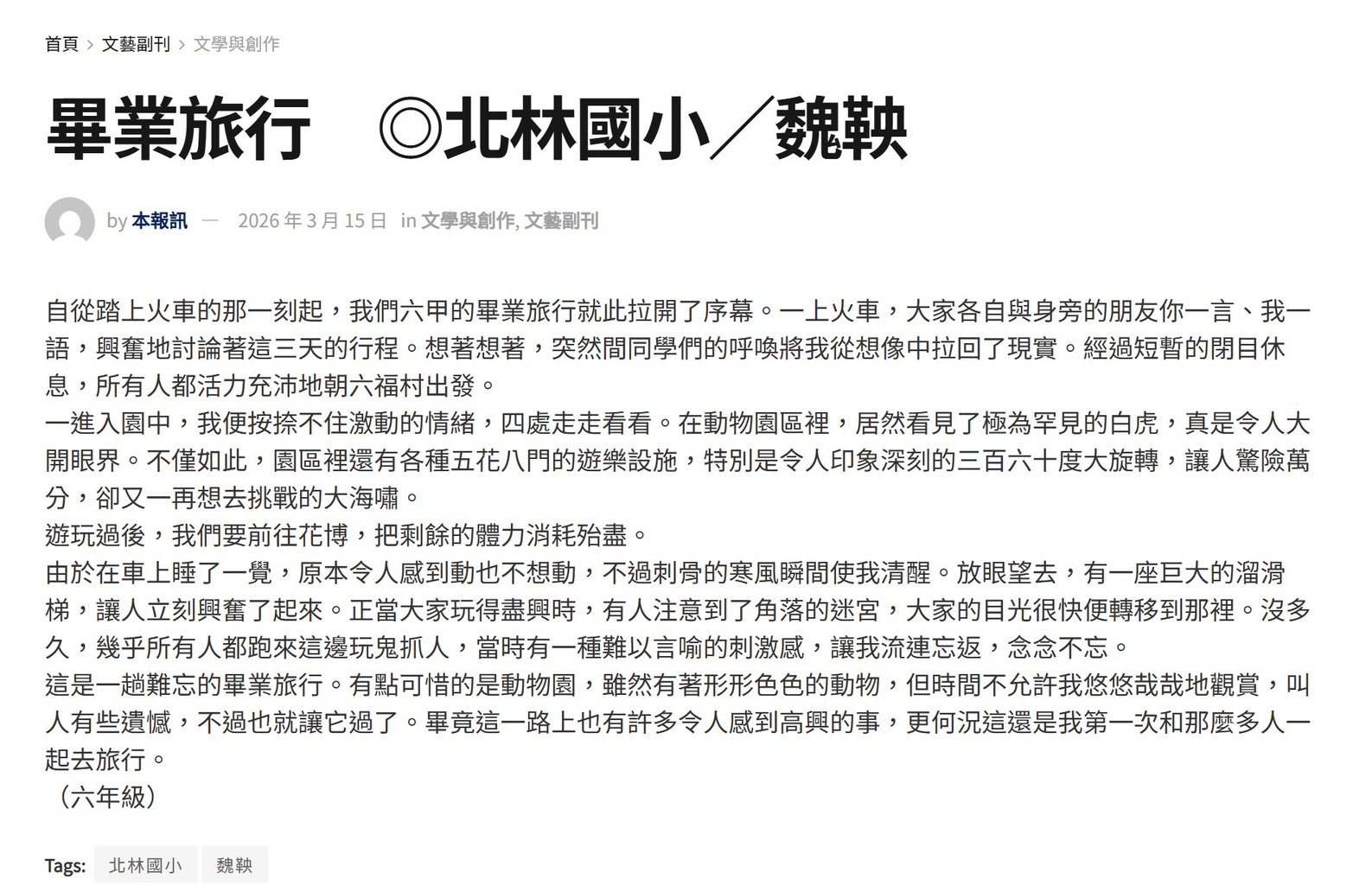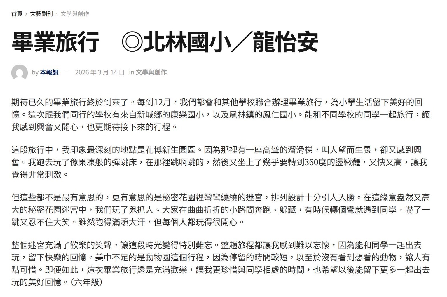 恭喜六年級學生稿文章獲更生日報兒童天地版刊登
