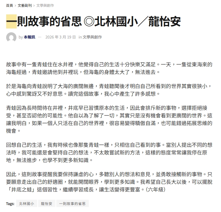 恭喜六年級學生稿文章獲更生日報兒童天地版刊登