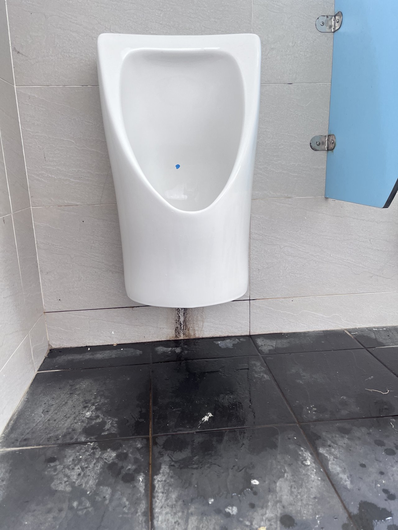 二樓男廁最左邊的小便斗(比較低的那個),下方常滲出惡臭、黃褐色的液體,疑似尿液。附圖是已經用刷具清潔後的照片,忘記拍最原始的狀況了。
