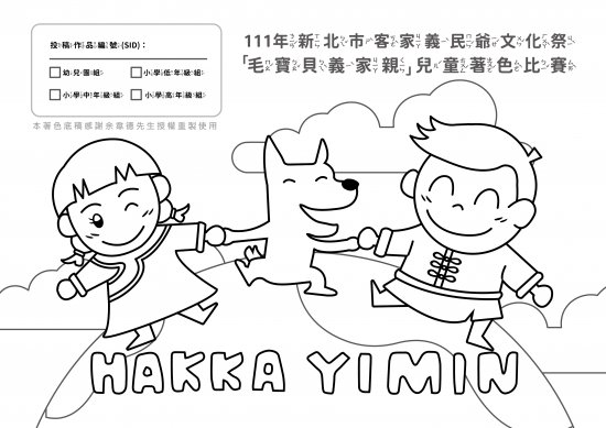 二、隨著飼養寵物的家庭日益增加,毛小孩已成為家庭中重要 的一份子,爰此,本活動以寵物友善生活為出發,將客家 元素與毛孩融合,期望透過兒童對色彩運用的創意與想像 力,在著色過程激發對於寵物友善環境的認知,也從中觸 及客家文化交流。
