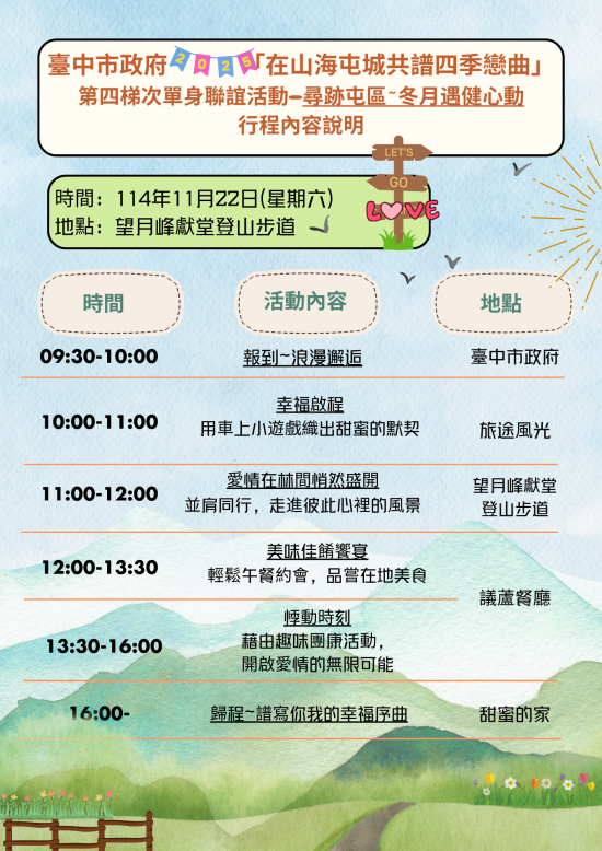 3、 辦理方式:健行--一起走,一起聊,一起遇見對的人。