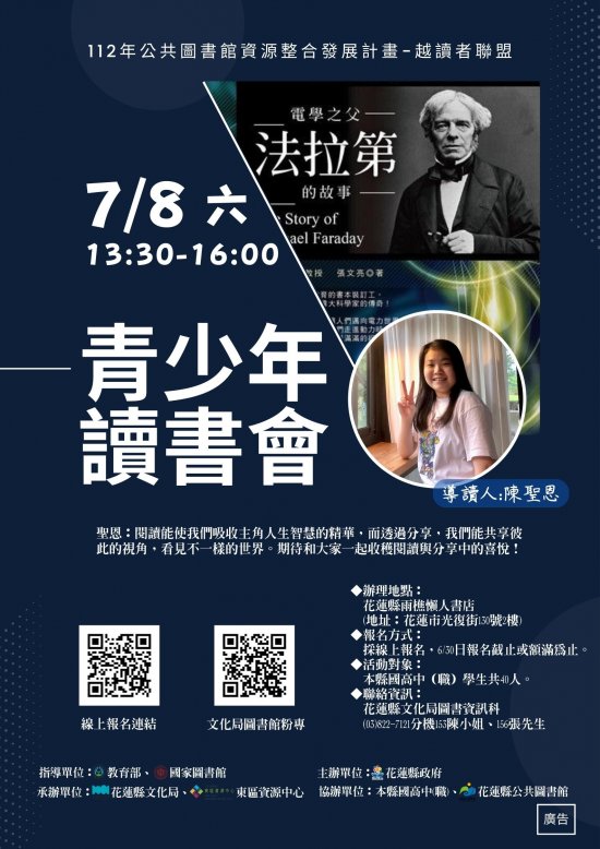 | (八) | 活動聯絡人:活動詳情請洽本局圖書資訊科03-8227121分機153陳小姐、156張先生。 |