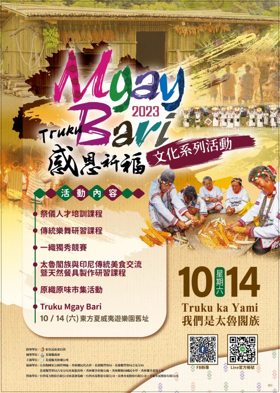 四、 活動內容有感恩祈福儀式、傳統舞蹈競賽、百人木琴展演、傳統歌謠傳唱展演、傳統競技競賽、傳統竹屋搭建、Truku文化體驗及傳統手工藝展示售等,相關活動訊息,請逕至本所資訊服務網站( http://www.shlin.gov.tw/ )查詢,或電洽本所文觀課03-8612116分機705王小姐。