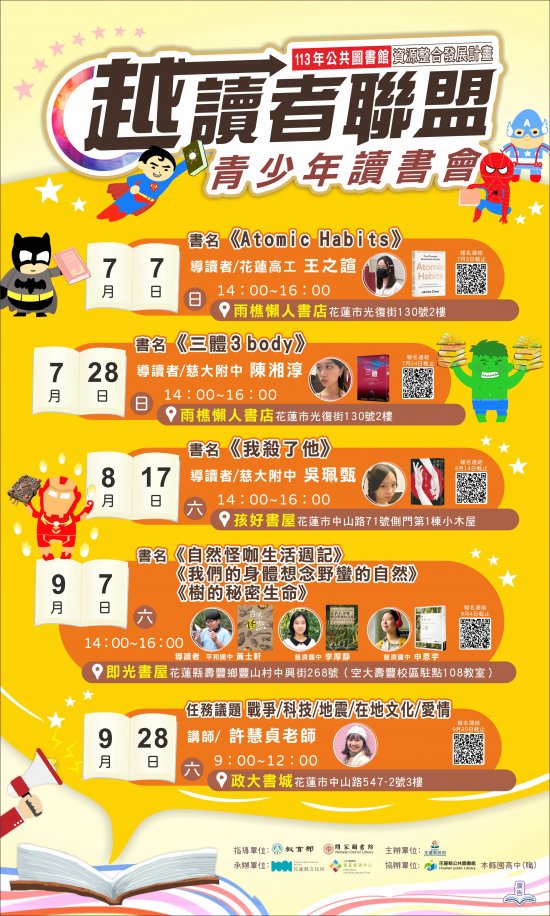 二、 旨案讀書會原訂於113年7月7日(日)下午2時假孩好書屋(花蓮市中山路71號側門第1棟小木屋)辦理,因恰逢縣府舉辦「夏戀嘉年華演唱會」,活動期間演唱團隊進行排練,現場音響恐影響干擾讀書會活動,故活動場地擬更改至雨樵懶人書店(花蓮市光復街130號2樓)辦理。