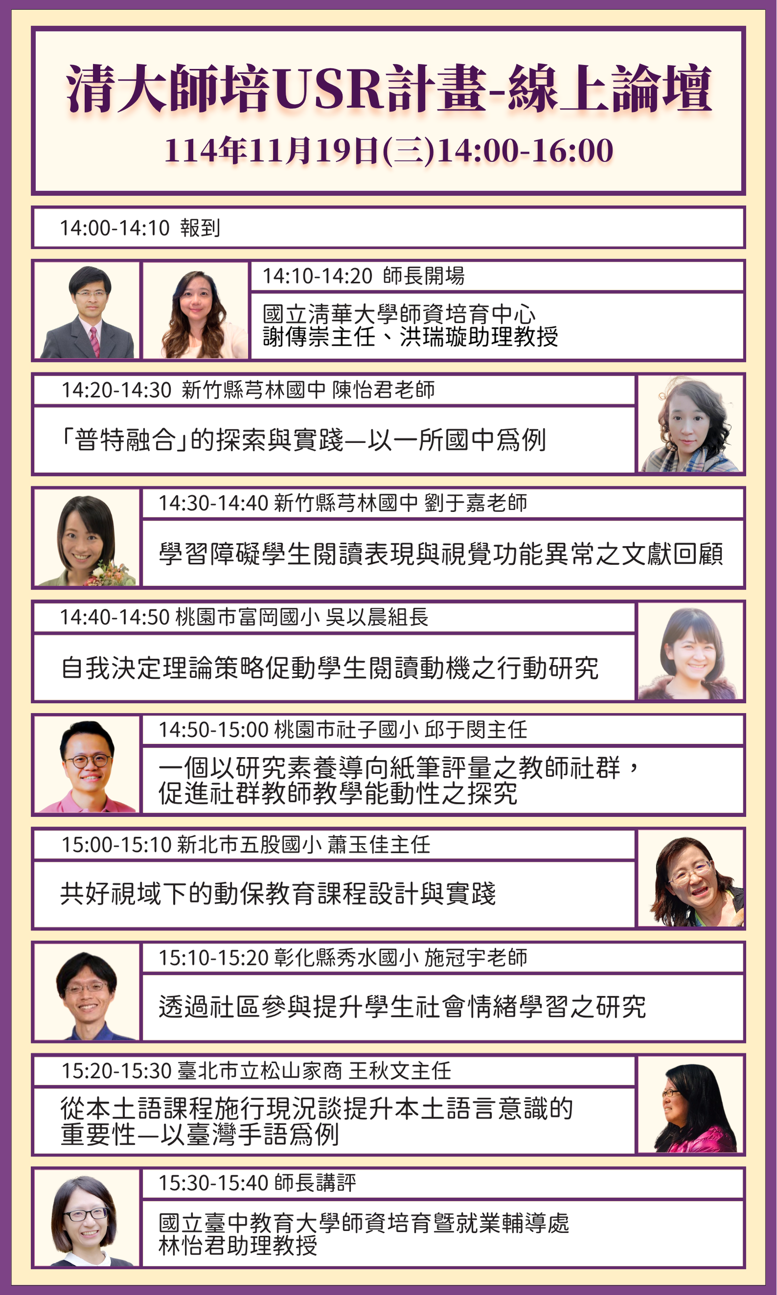 二、 國立清華大學為推廣該校USR計畫之研究成果,爰辦理線上論壇,邀請參與計畫教師分享教學實踐與行動研究經驗,以促進跨域交流與專業對話。