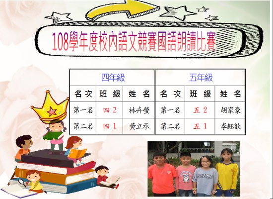 108學年度校內語文競賽「國語朗讀比賽」成績公告
