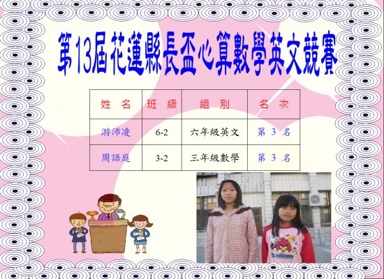 第13屆花蓮縣長盃心算數學暨英文競賽得獎名單