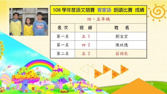 108學年度校內語文競賽「客家語朗讀比賽」成績公告