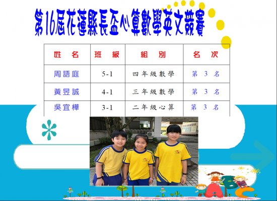 第16屆花蓮縣長盃心算數學英文競賽 得獎名單