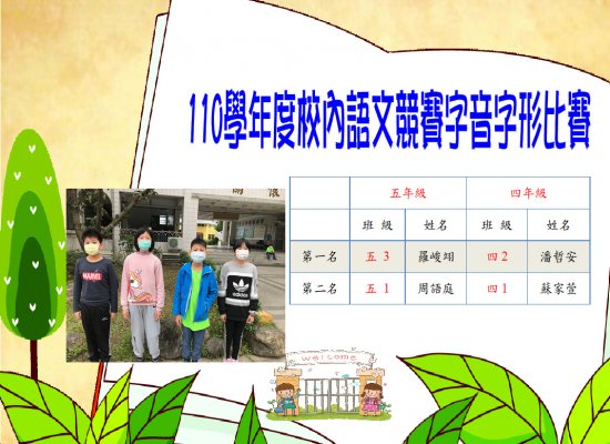 110學年度4-5年級校內語文競賽「字音字形比賽」得獎名單