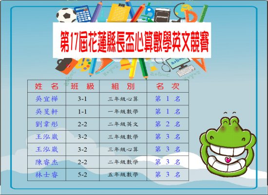 第17屆花蓮縣長盃心算數學暨英文競賽成績公告