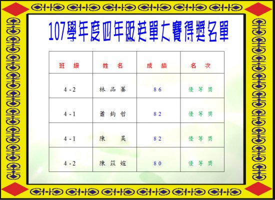 107學年度四年級英單大賽成績公告
