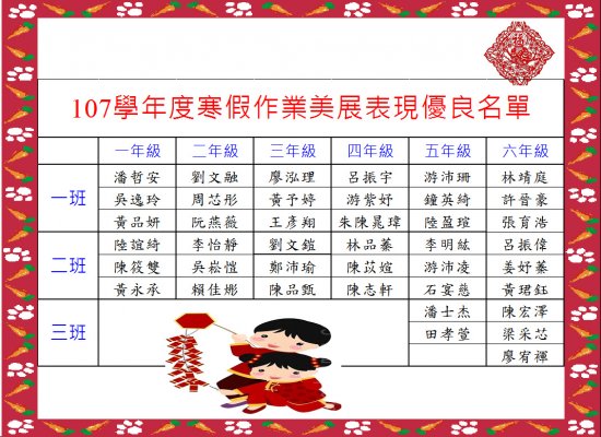 107學年度寒假作業美展優良作品成績公告