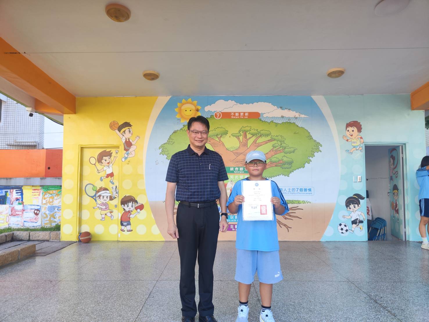 林竑邑獲國小中年級男子組 50M 蛙式第三名