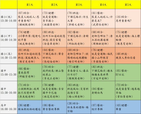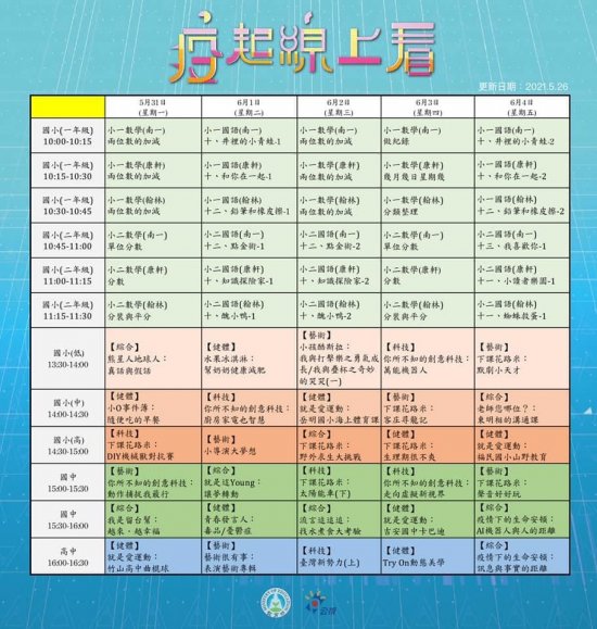 ★公視 3 台(5/19-7/2 課程節目表如附件。頻道為:洄瀾第四台 106 、 MOD98 、數位電視 11)。