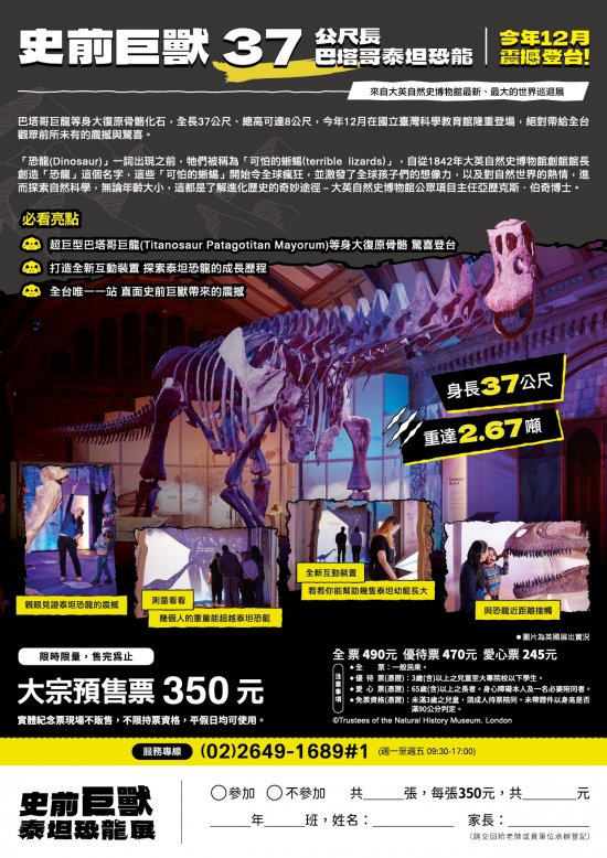 四、 「史前巨獸泰坦恐龍展」特展資訊:
