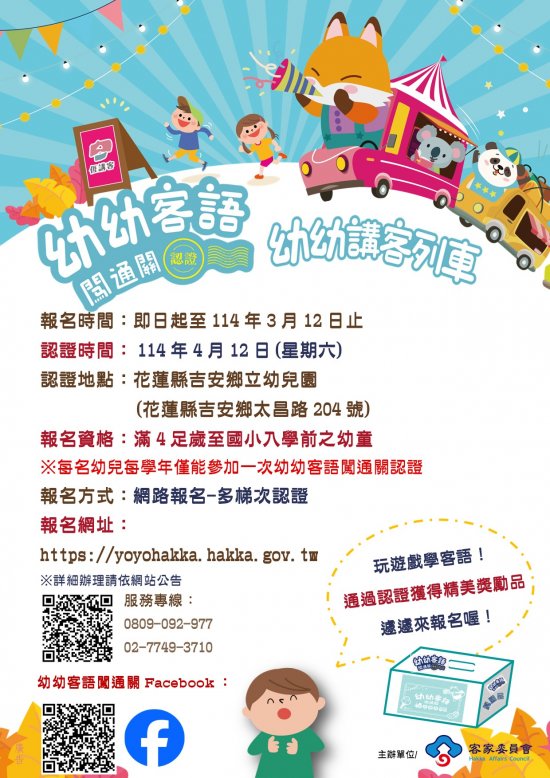 三、 114 年度本縣「幼幼客語闖通關」多梯次認證-幼幼講客列車活動,相關訊息如下: