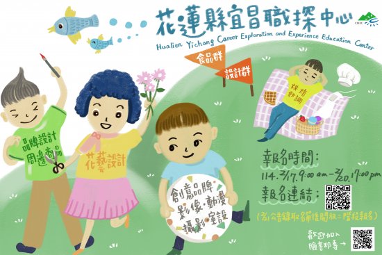 | 三、 | 第一階段報名時間自 114 年 2 月 17 日 9:00 至 2 月 20 日 17:00 ,請逕自報名網址 https://reurl.cc/86MzaX 進行報名作業,或於「花蓮縣宜昌區域職業試探與體驗示範中心」粉專點選報名連結,或掃描海報 QR code 報名,第一階段錄取名單將於 114 年 2 月 21 日公告於粉絲專頁,並自公告名單後開放第二階段報名。 |
