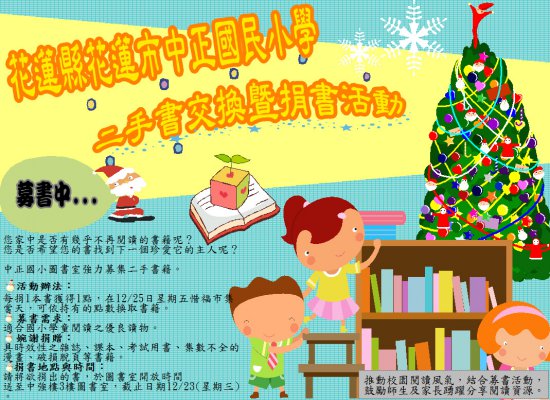 (二)活動方式:凡於第一階段捐贈書籍之教職員工、學生及學生家長,可於第二階段至二手書攤位兌換書籍,活動當天若未兌換完畢,視同放棄兌換權益。未兌換完餘書,由圖書志工整理後充實本校圖書角或參加愛心贈書活動,亦歡迎大家贈書。