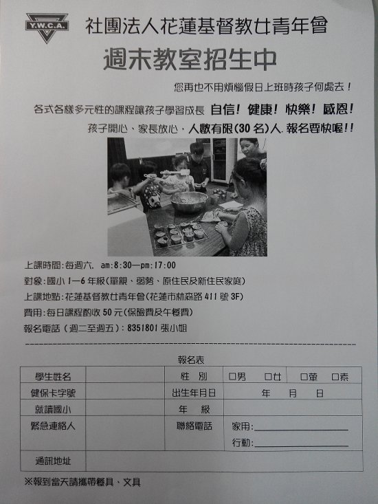 花蓮基督教女青年會為弱勢家庭之子女開辦週末照顧教室(如附件)