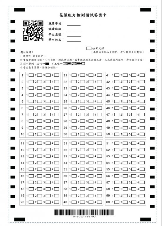 一、 104 年度學力檢核答案卡大小為「A4」紙。
