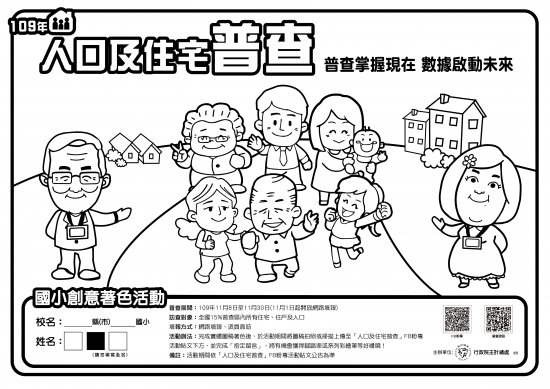 二、 109 年人口及住宅普查預訂於本( 109 )年 11 月辦理,行政院主計總處將於 9 月中旬寄送著色圖稿(如附件)至各國民小學,請主計人員協助轉發全校師生。