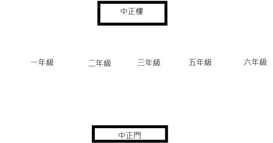 2.依照圖片說明,按年級順序於疏散場地排列,以便清查人數。