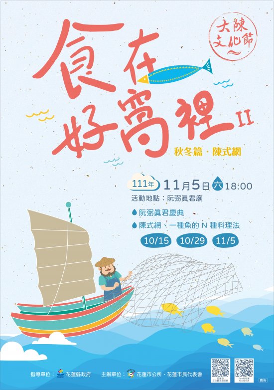 一、旨案活動為花蓮縣政府補助本所辦理 111 年大陳文化節,為促進大陳文化存續並提升大眾文化意識,規劃有大陳傳統 魚料理、漁網編織應用及阮弼真君慶典晚會等系列活動。