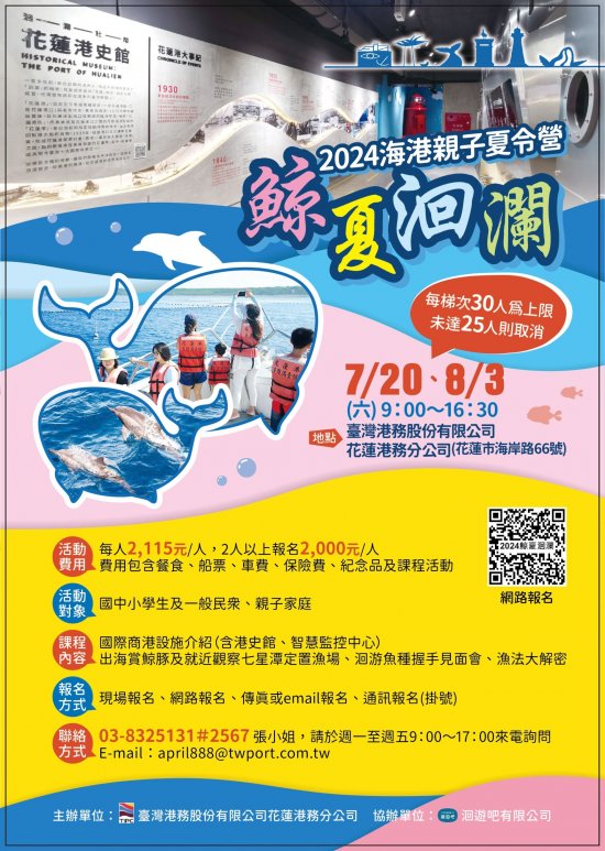 於 113 年 7 月 20 日及 8 月 3 日舉辦「海港親子夏令營-鯨夏洄瀾」活動。