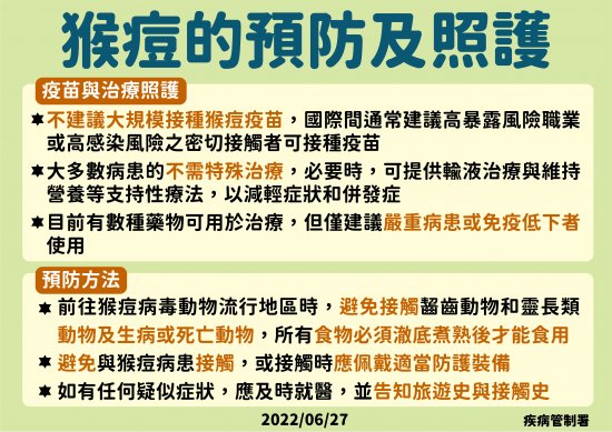 有關「猴痘」之通報定義及相關防治措施,請參閱衛生福利部疾病管制署網站(
