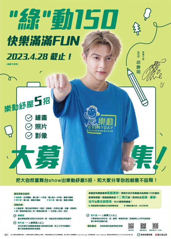 敬請 貴校踴躍申請參與「綠」動150,快樂滿滿Fun!推廣活動及領取宣導品,申請截止日期至3月22日,請學校於