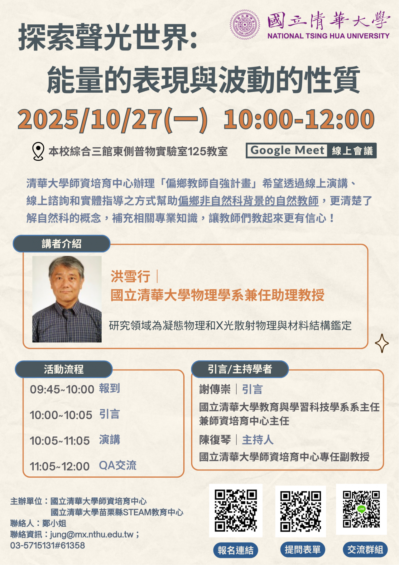 (三) 講師:本校物理系洪雪行兼任助理教授。