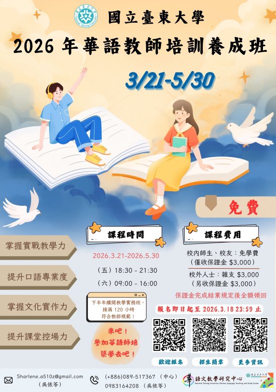 (四)更多課程資訊,請參考國立臺東大學華語文教學研究中心網頁:https://cltsc.nttu.edu.tw/p/412-1049-10783.php。