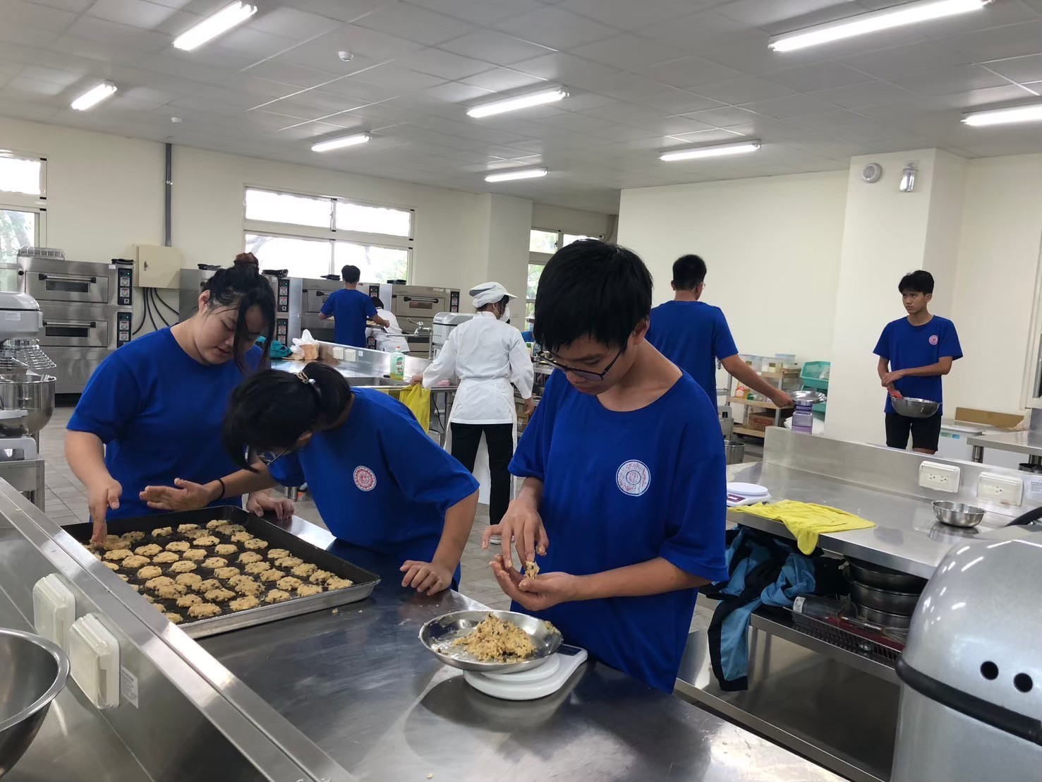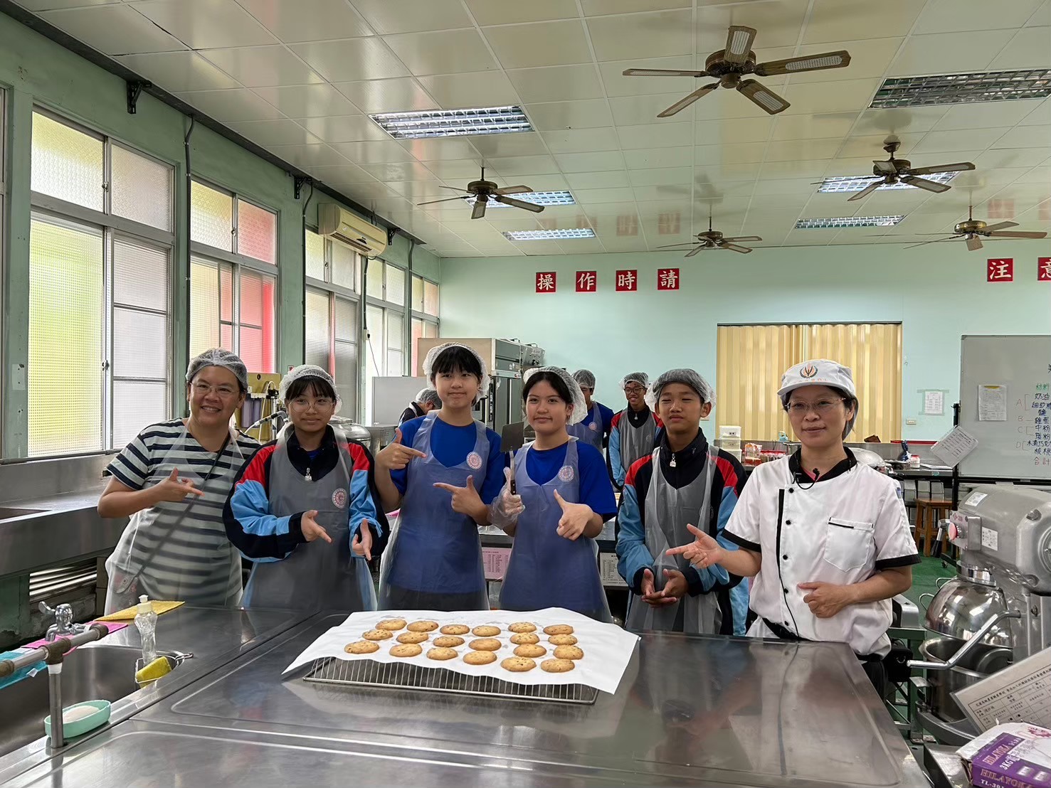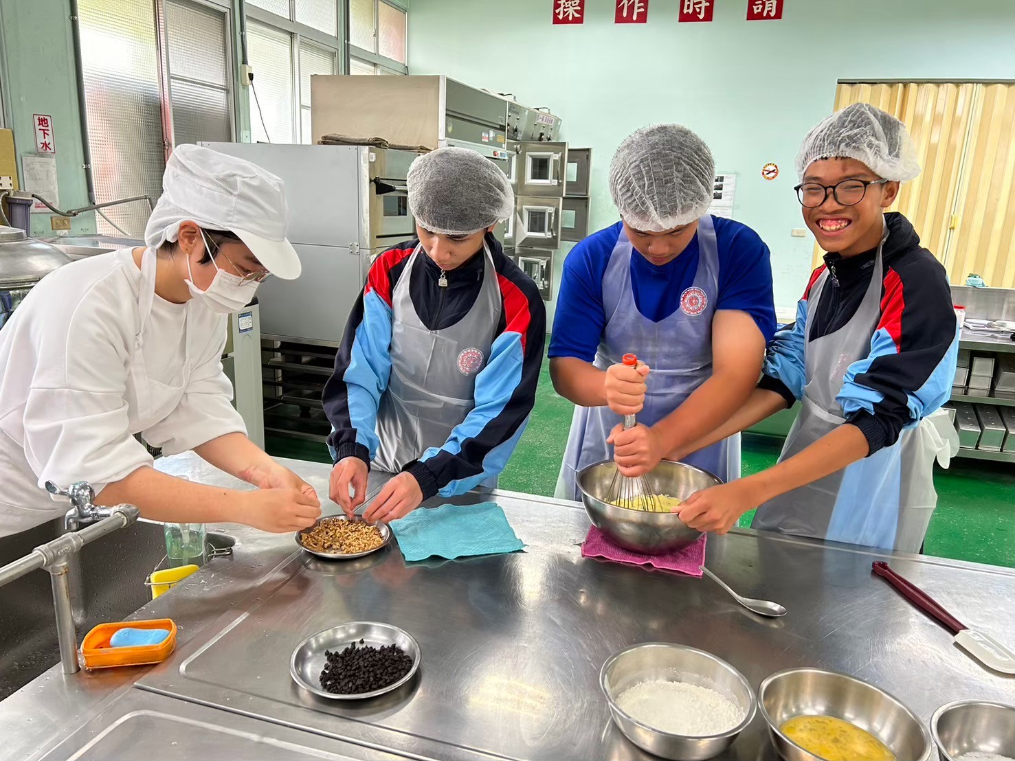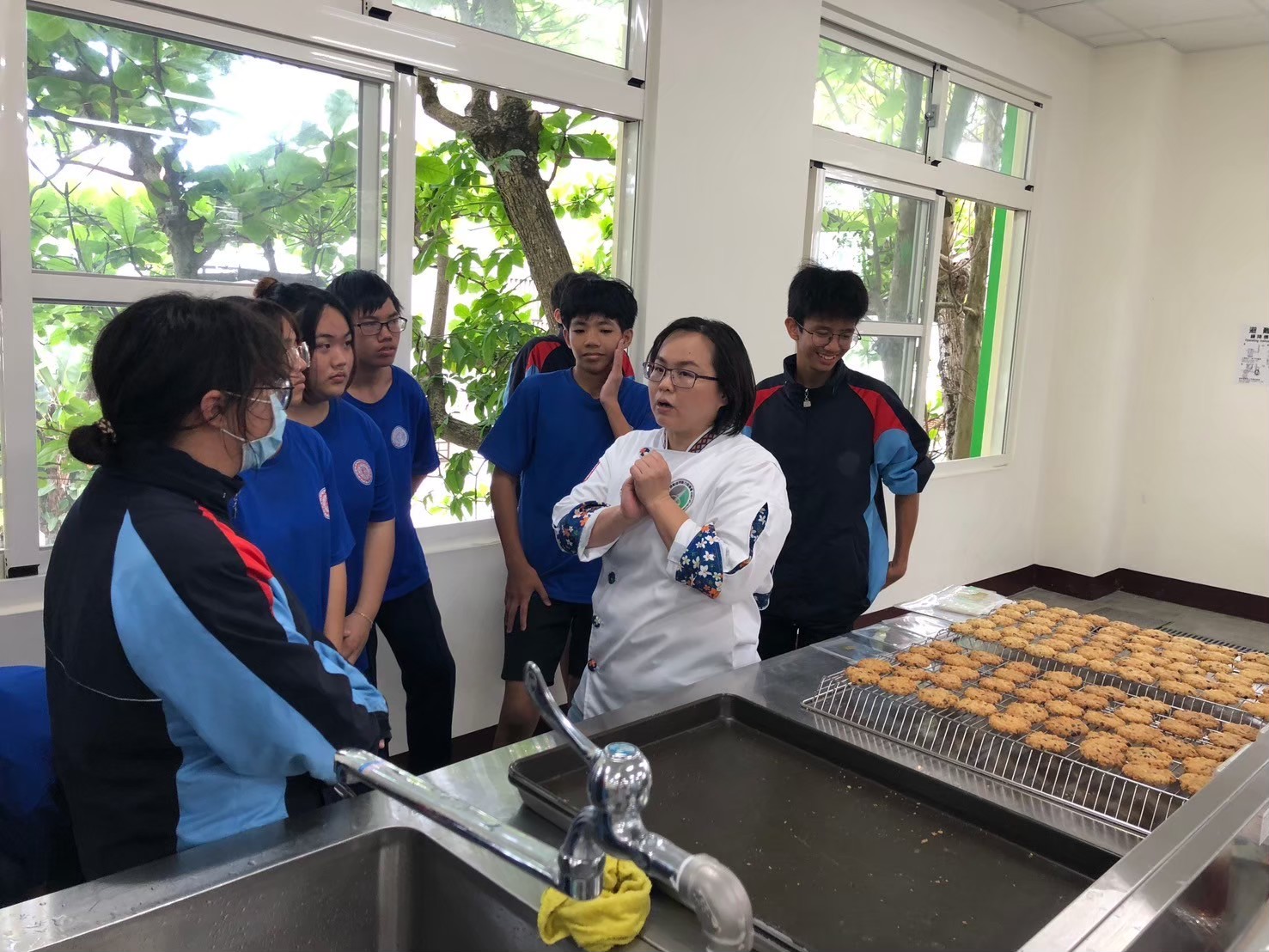 下午,我們來到了花蓮高農,進行餐飲科與食品科的手作餅乾實作,兩位科主任與技藝競賽得獎的學姊們一同帶領,讓每個孩子都頓時成為點心製作達人,經過主任們的介紹,也令孩子們清楚餐飲科與食品科的差異性,在未來的科系選擇中,如何找到適合自己並能發揮所長的工作。