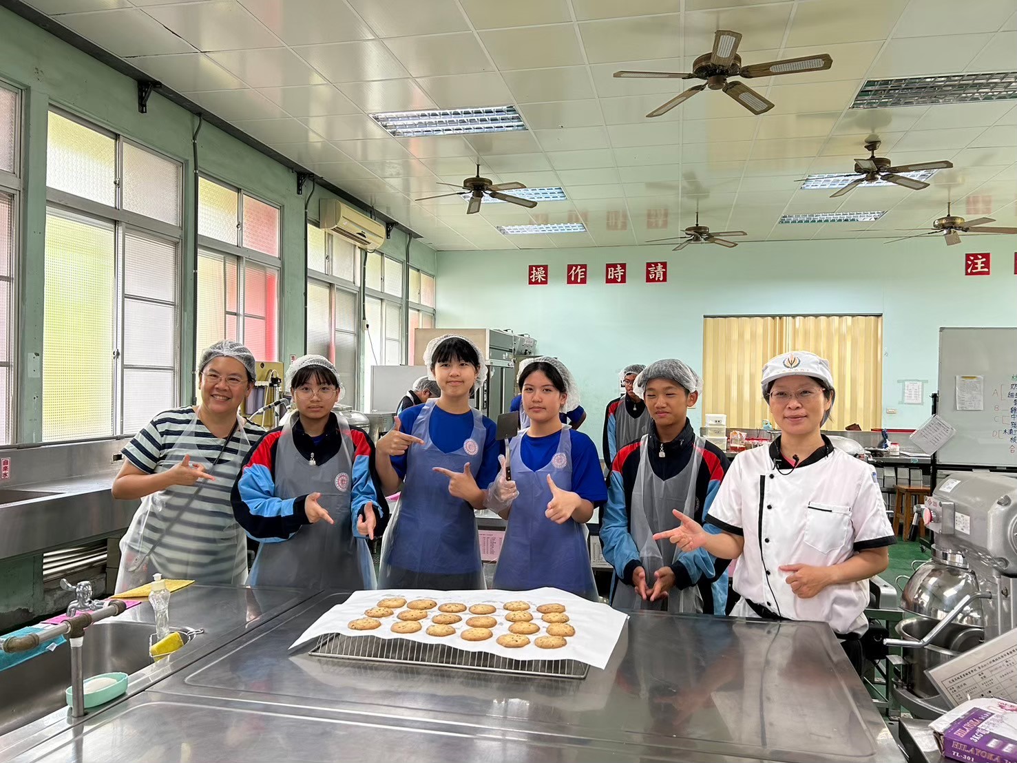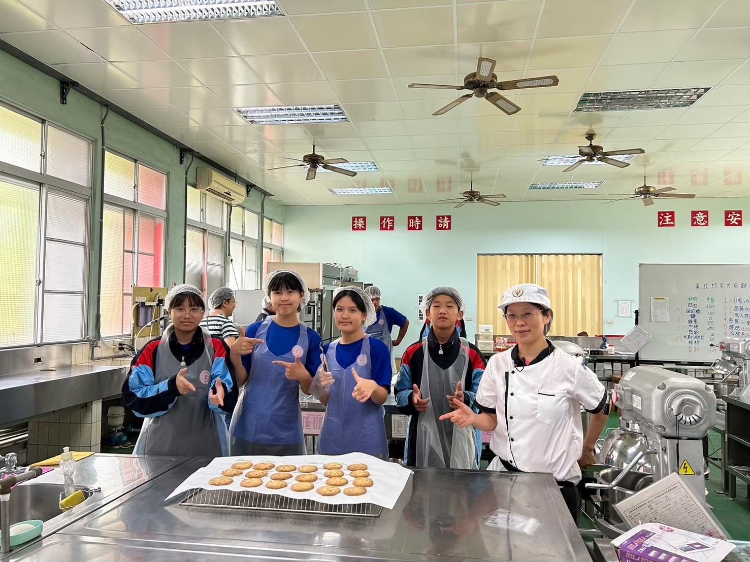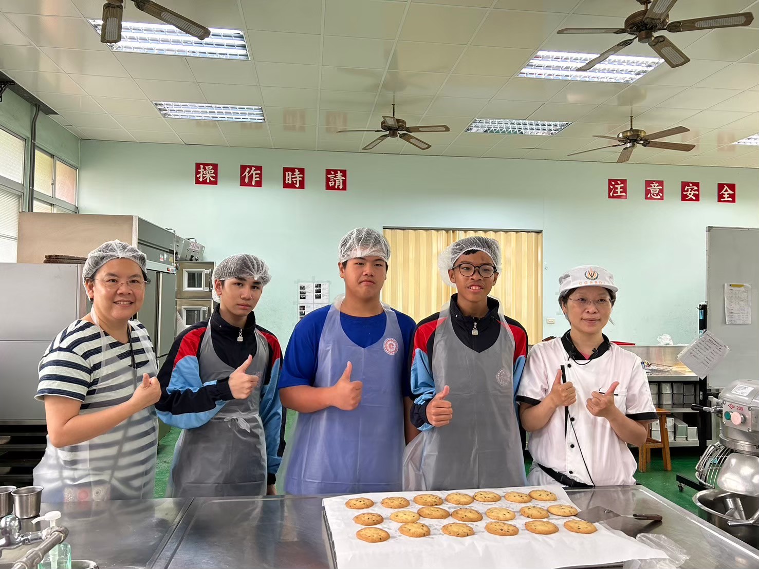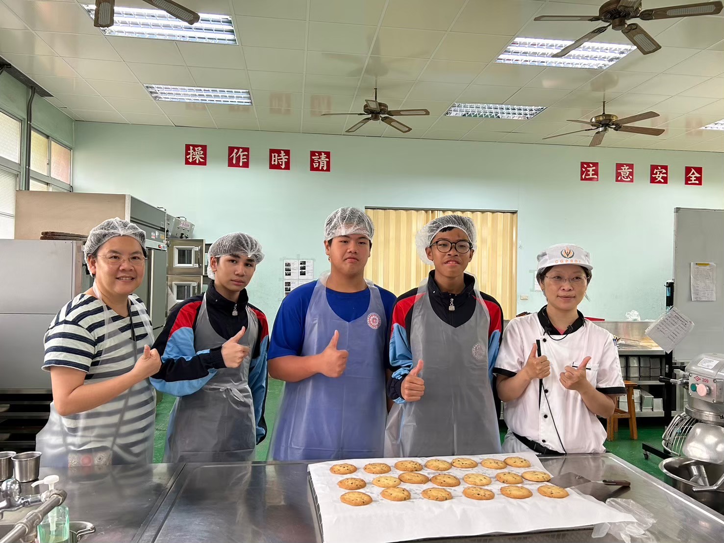 下午,我們來到了花蓮高農,進行餐飲科與食品科的手作餅乾實作,兩位科主任與技藝競賽得獎的學姊們一同帶領,讓每個孩子都頓時成為點心製作達人,經過主任們的介紹,也令孩子們清楚餐飲科與食品科的差異性,在未來的科系選擇中,如何找到適合自己並能發揮所長的工作。