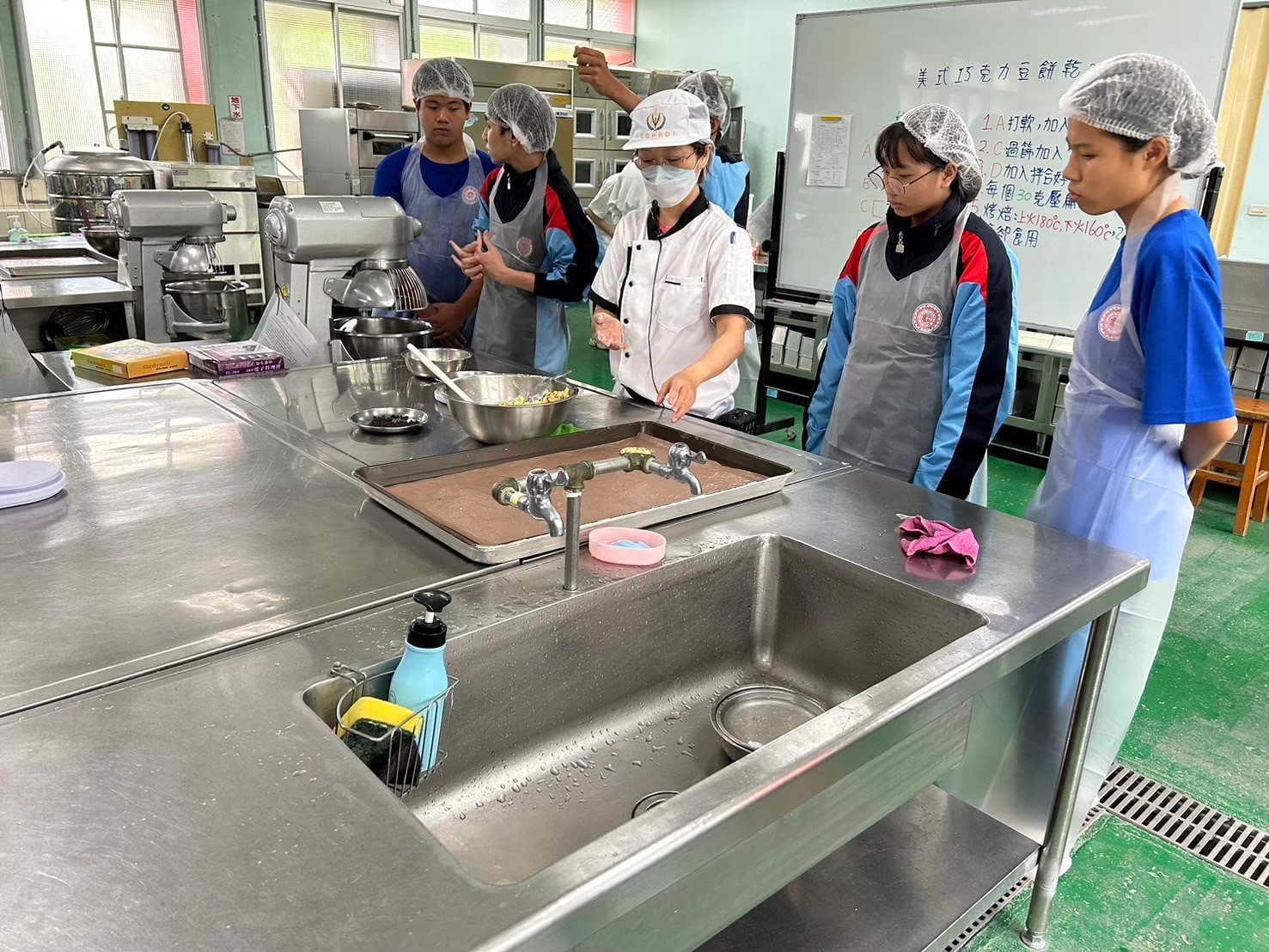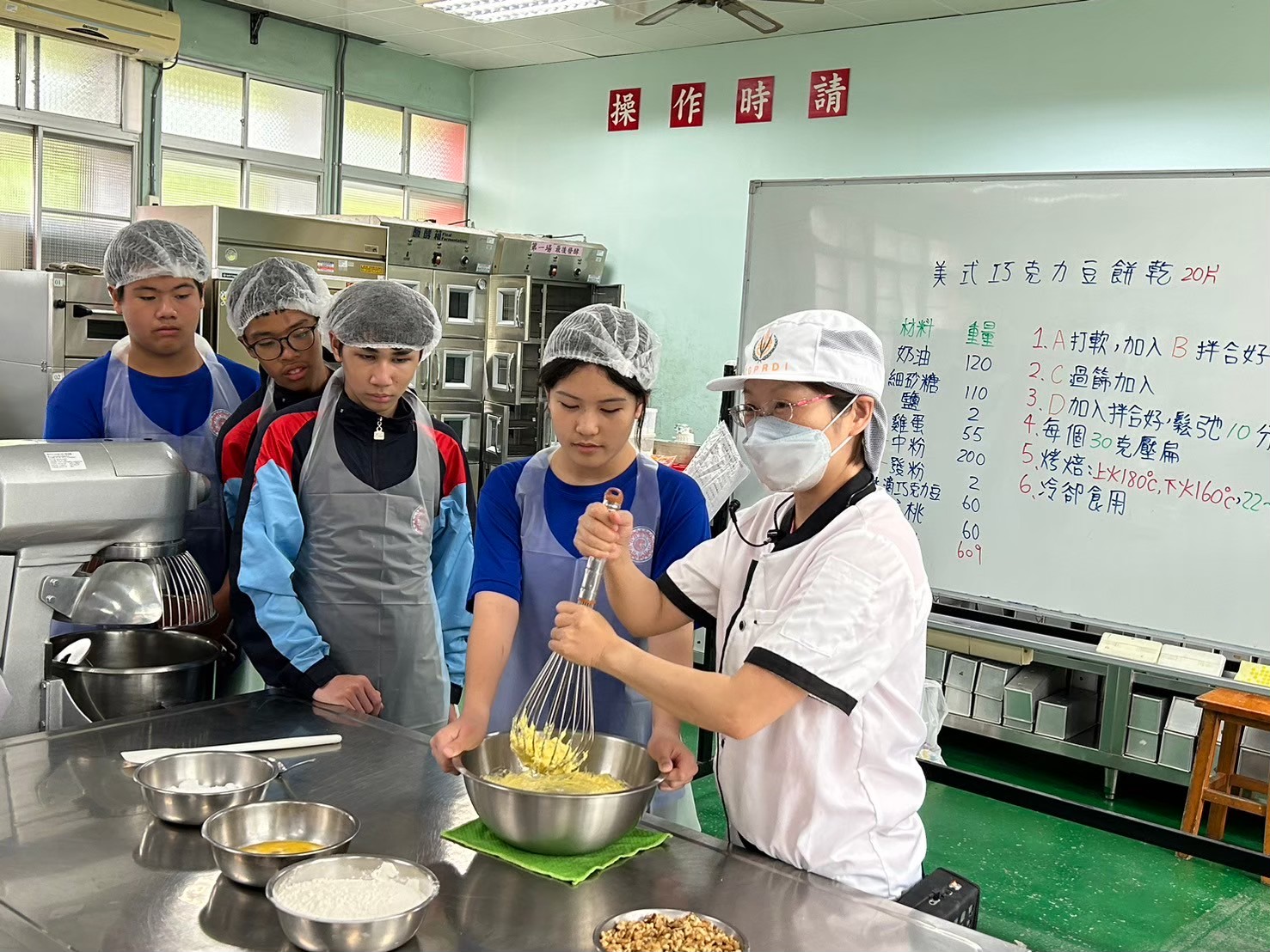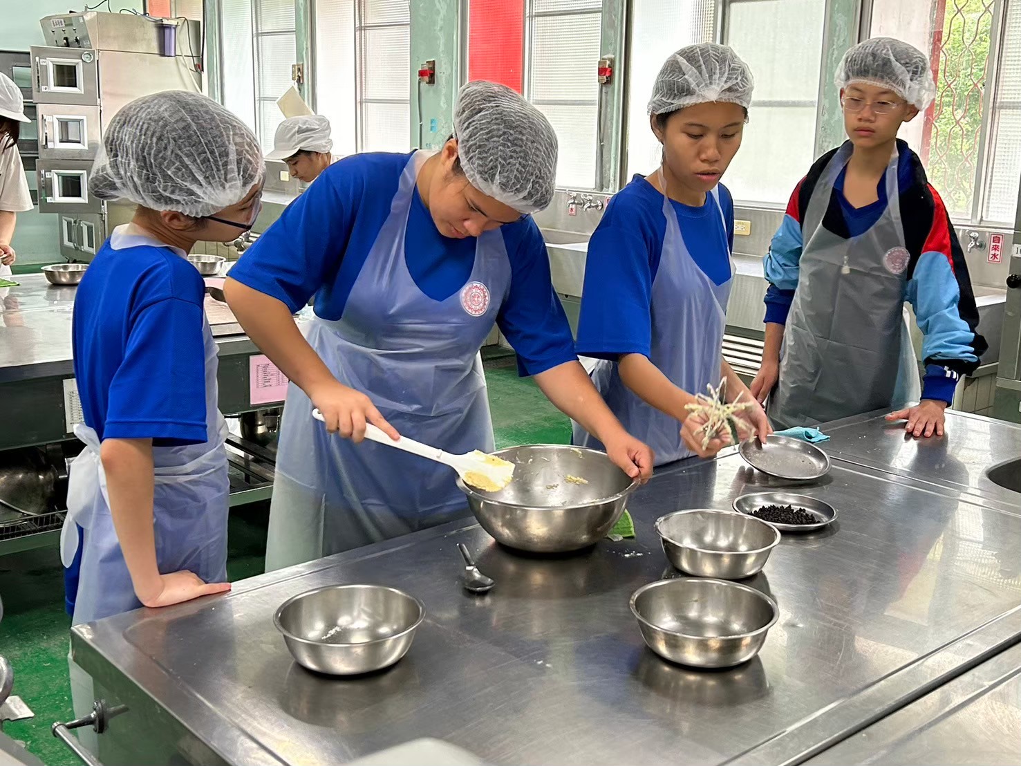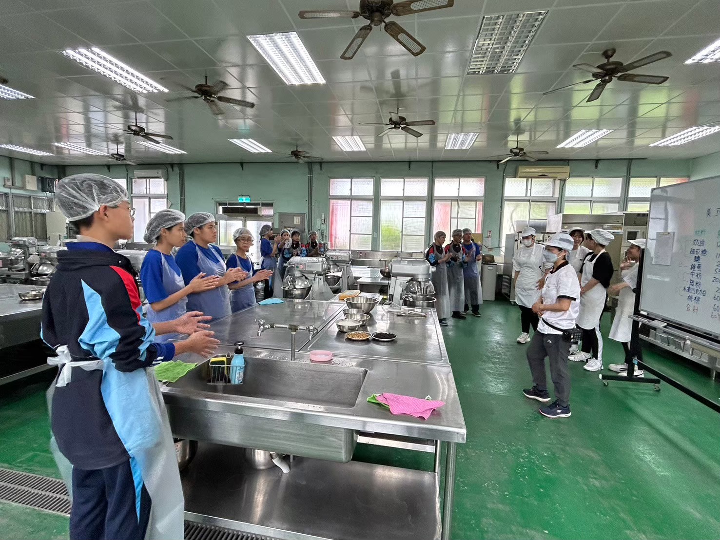 下午,我們來到了花蓮高農,進行餐飲科與食品科的手作餅乾實作,兩位科主任與技藝競賽得獎的學姊們一同帶領,讓每個孩子都頓時成為點心製作達人,經過主任們的介紹,也令孩子們清楚餐飲科與食品科的差異性,在未來的科系選擇中,如何找到適合自己並能發揮所長的工作。