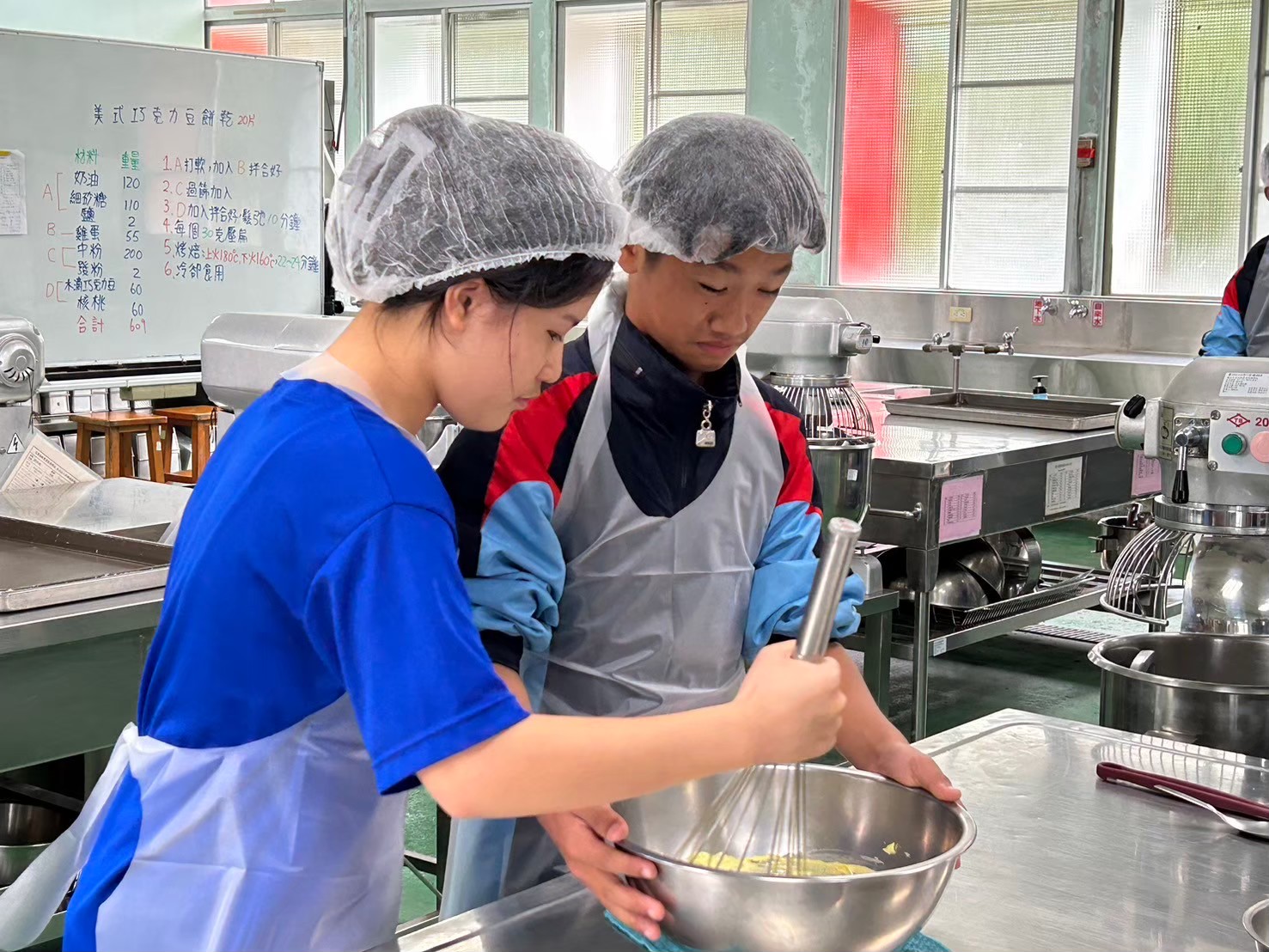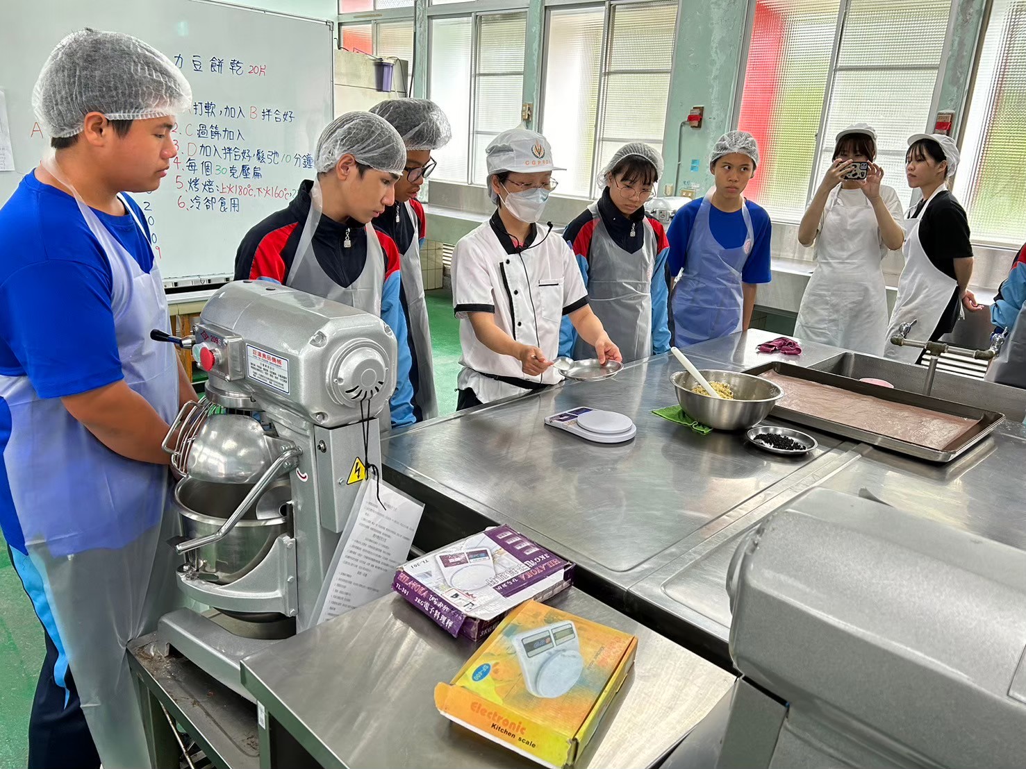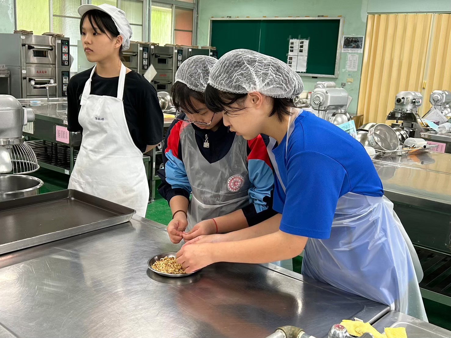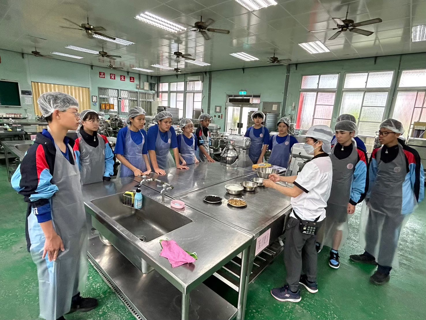 下午,我們來到了花蓮高農,進行餐飲科與食品科的手作餅乾實作,兩位科主任與技藝競賽得獎的學姊們一同帶領,讓每個孩子都頓時成為點心製作達人,經過主任們的介紹,也令孩子們清楚餐飲科與食品科的差異性,在未來的科系選擇中,如何找到適合自己並能發揮所長的工作。