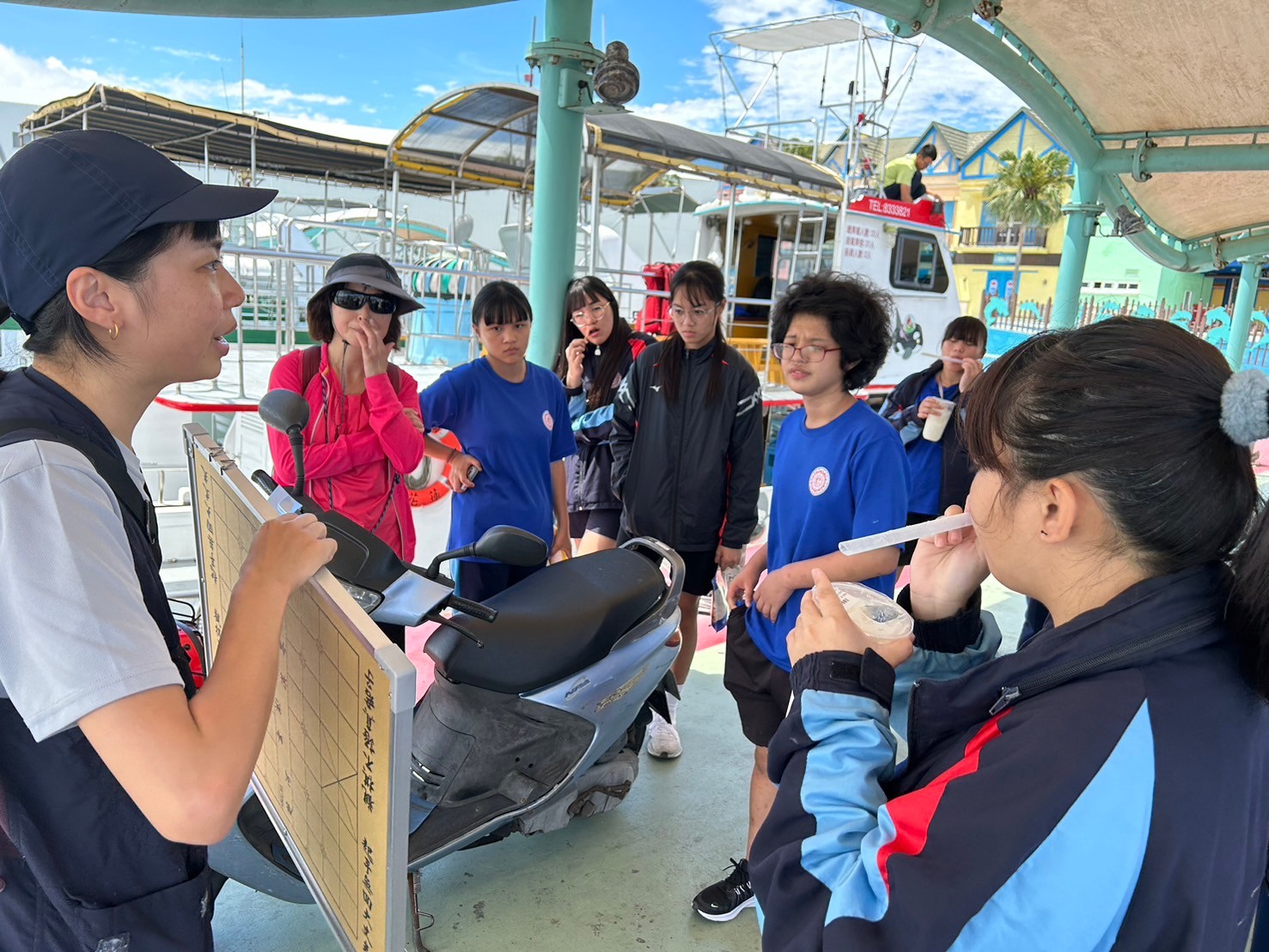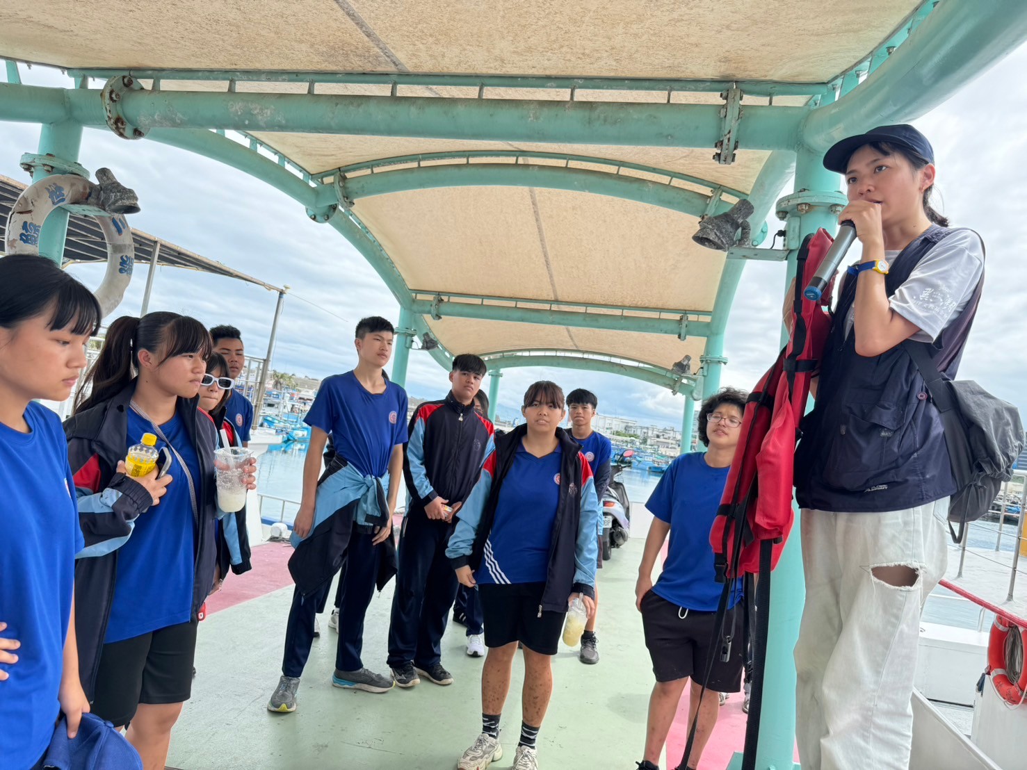 5/30豐濱國中九年級師生參與黑潮海洋基金會「跟著鯨豚來海上」活動,進行了一個下午的賞鯨戶外教學,本來很擔心幾天的午後雷陣雨是否會影響行程,但老天爺保佑,讓我們今日的出航有微風和白雲相伴,天氣舒適宜人。
