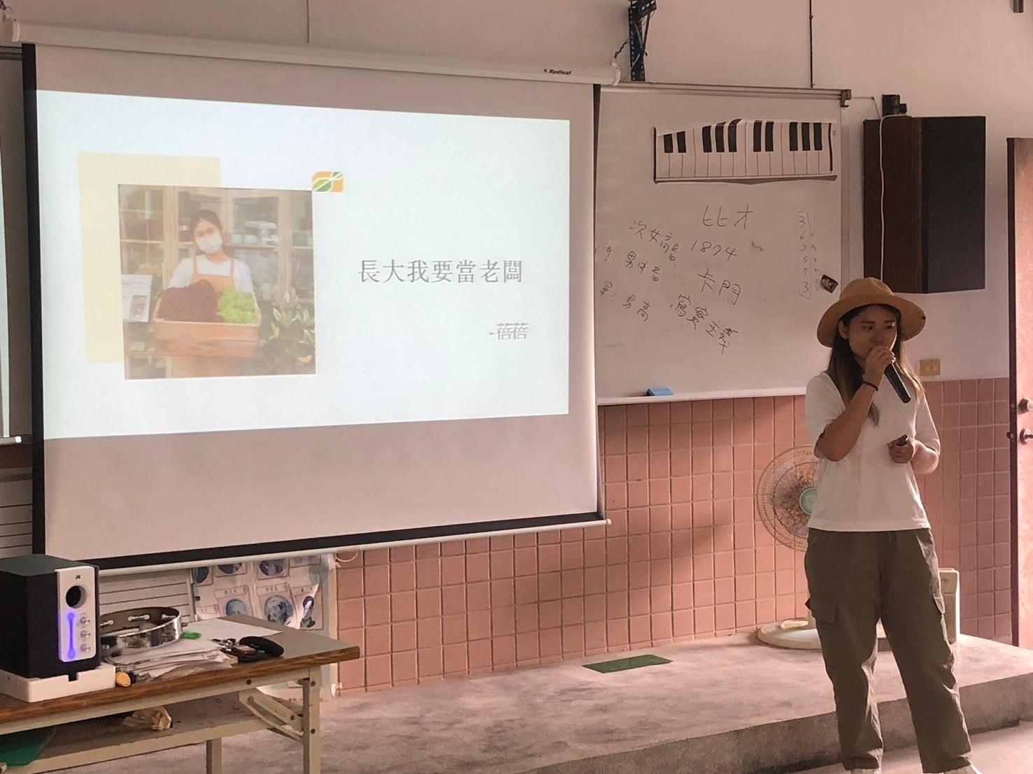 有幸芽田店長陳思蓓在生涯講座開場slide中投影出鏗鏘有力的亮點標語:「長大我要當老闆!」。