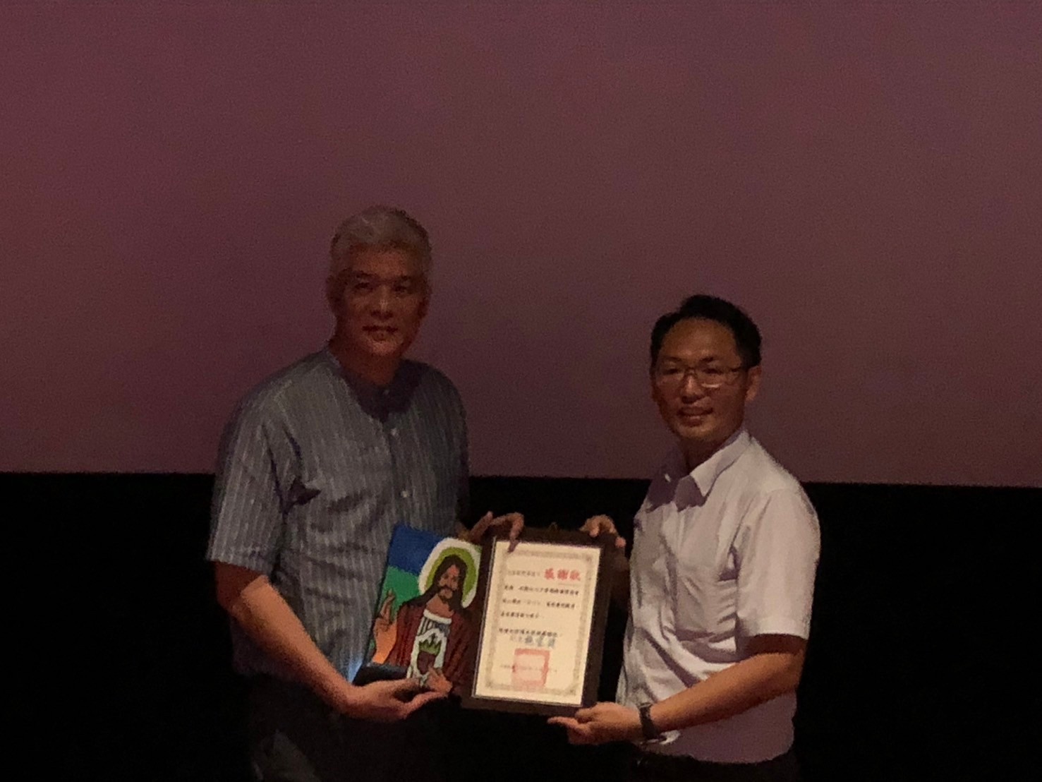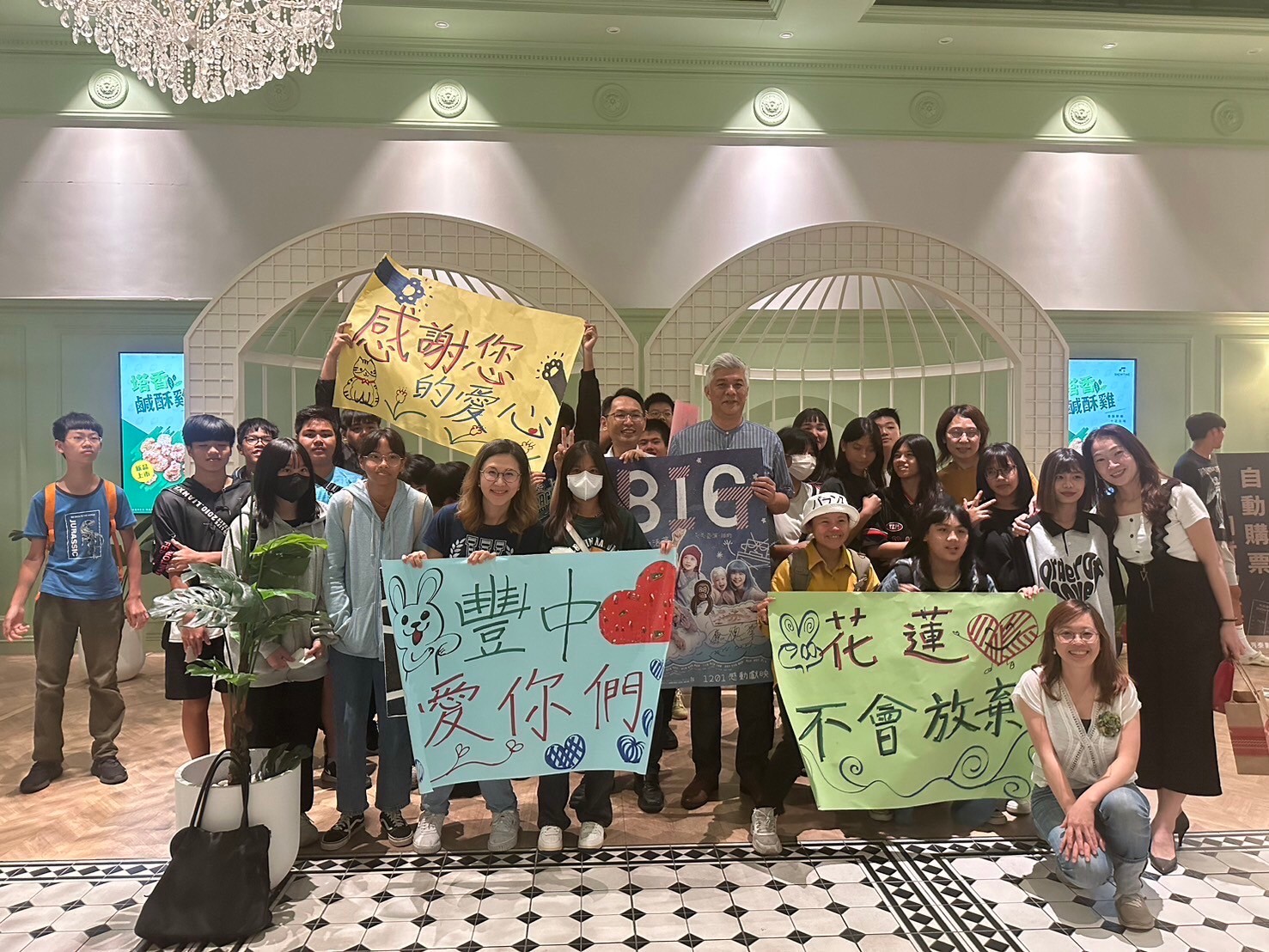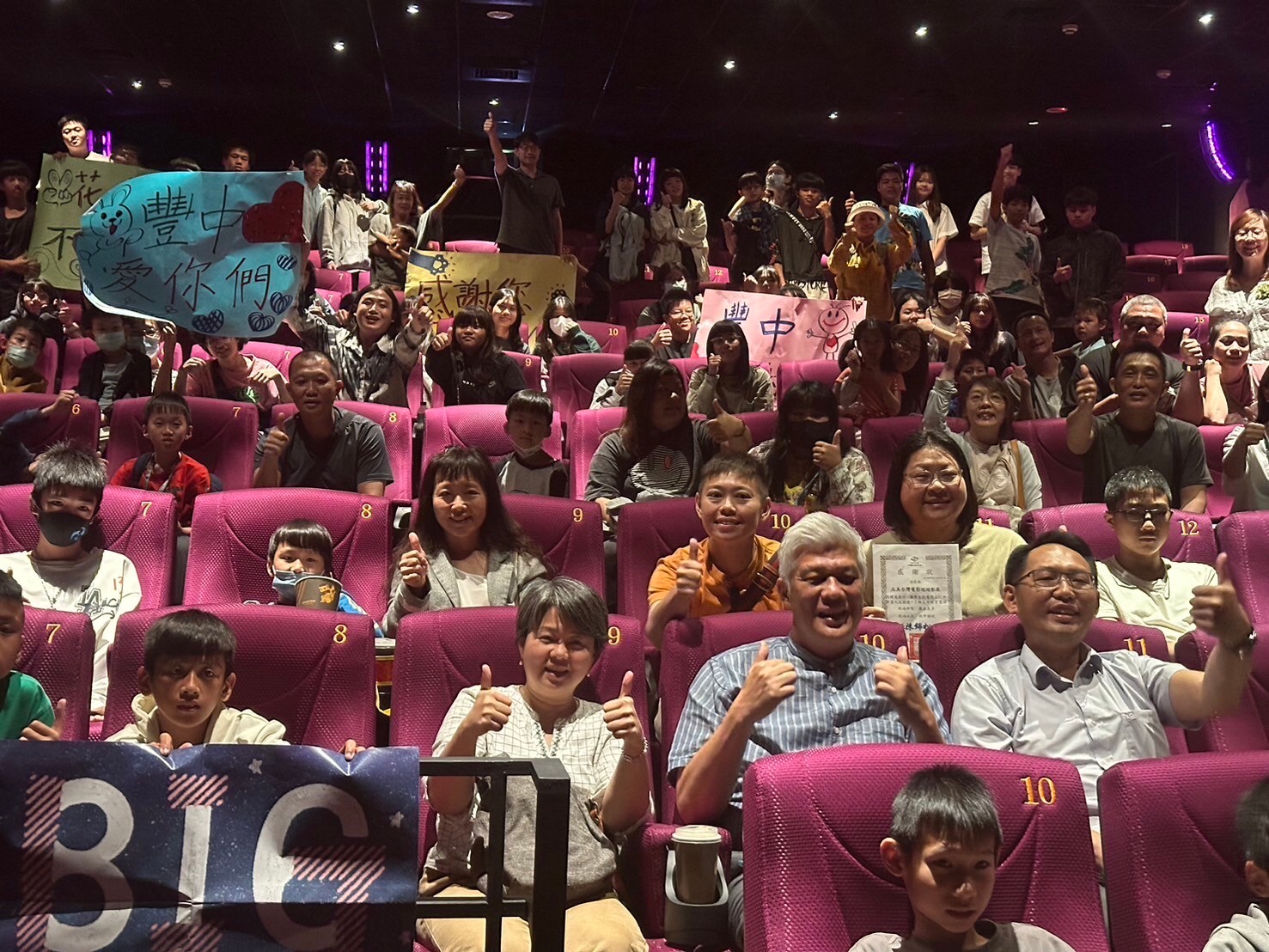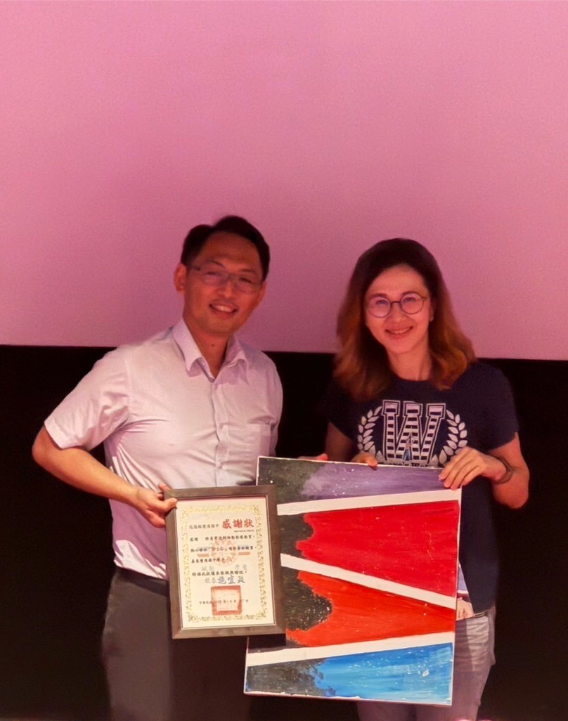 豐濱國中校長施宜廷特別獻上代表豐濱國中師生的感謝狀及豐濱國中小學堂親繪畫作,藉此表達對於東華附小貞雯老師和中華飛揚關懷協會帶領幕後團隊所附上的心思、心力與時間;熱心連結了豐濱國中師生能參與導演魏德聖《BIG 816》的公益包場電影,也勉勵豐濱國中學子存留著電影所給予的力量:學習帶著珍惜、正面的心面對活著的每一天!