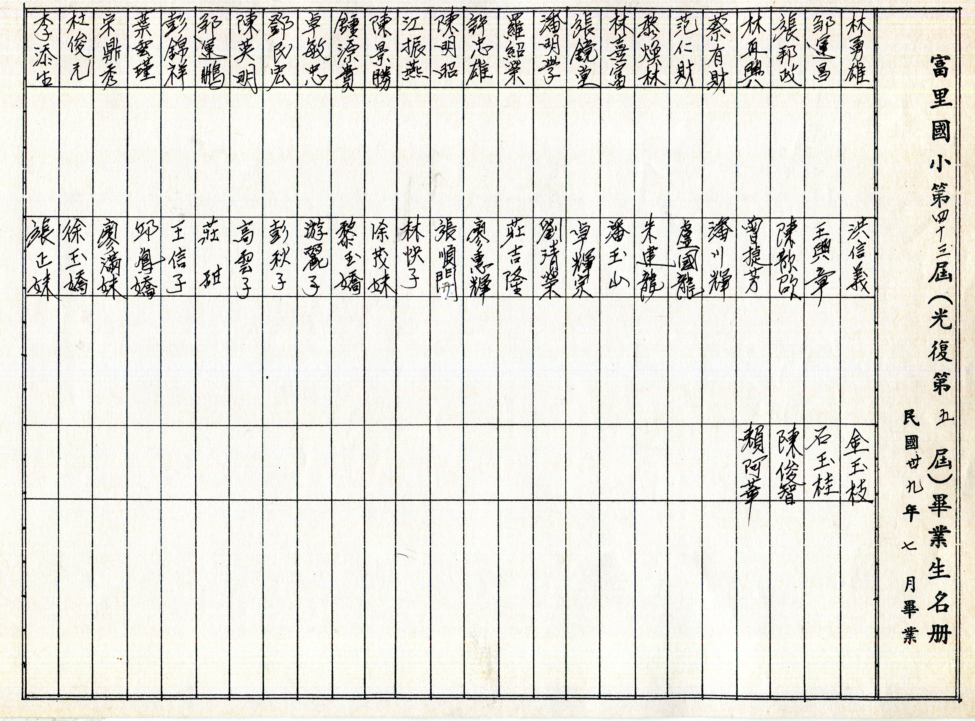 富里國小教育基金會獎學金名單