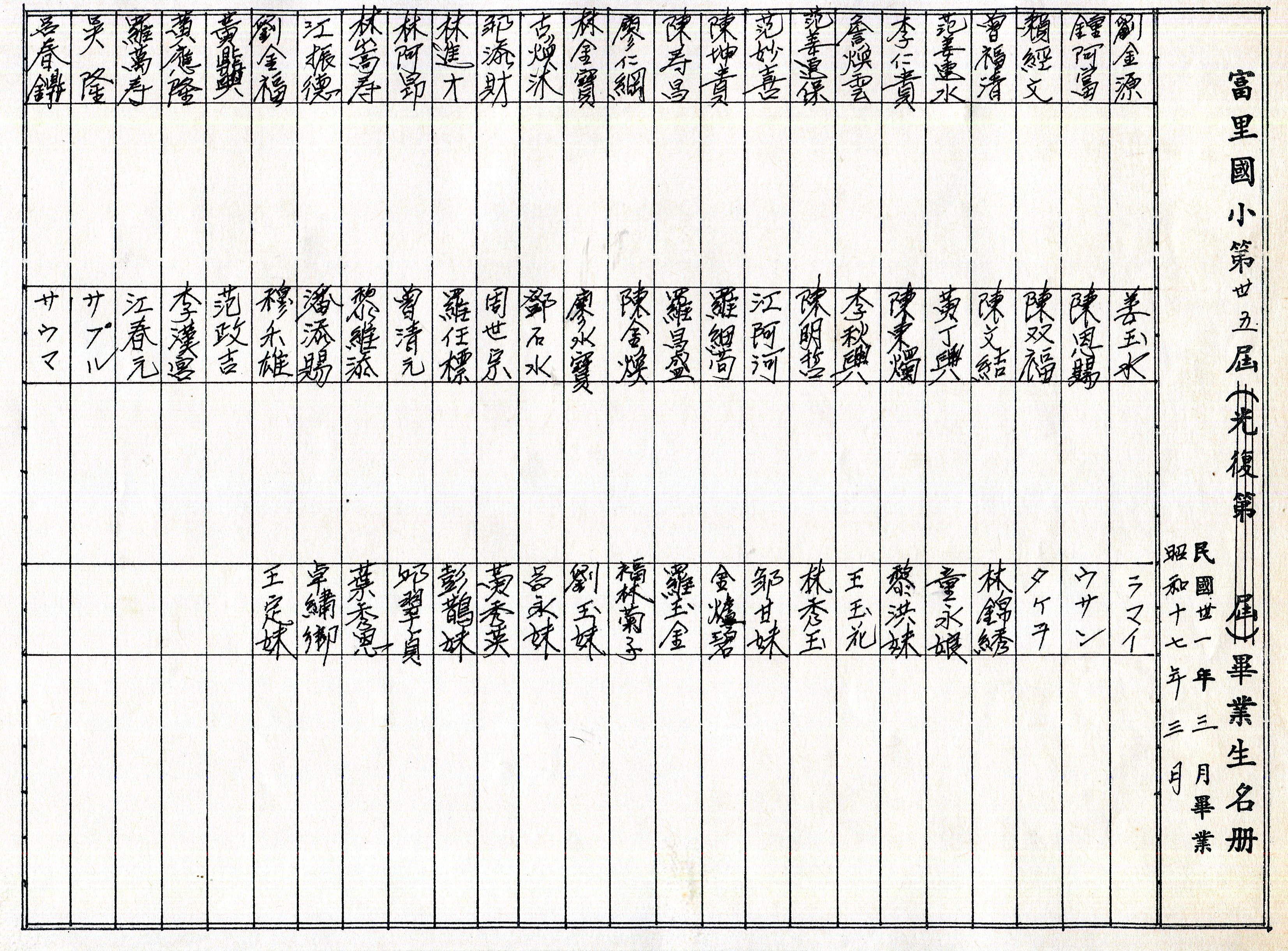 富里國小教育基金會獎學金名單