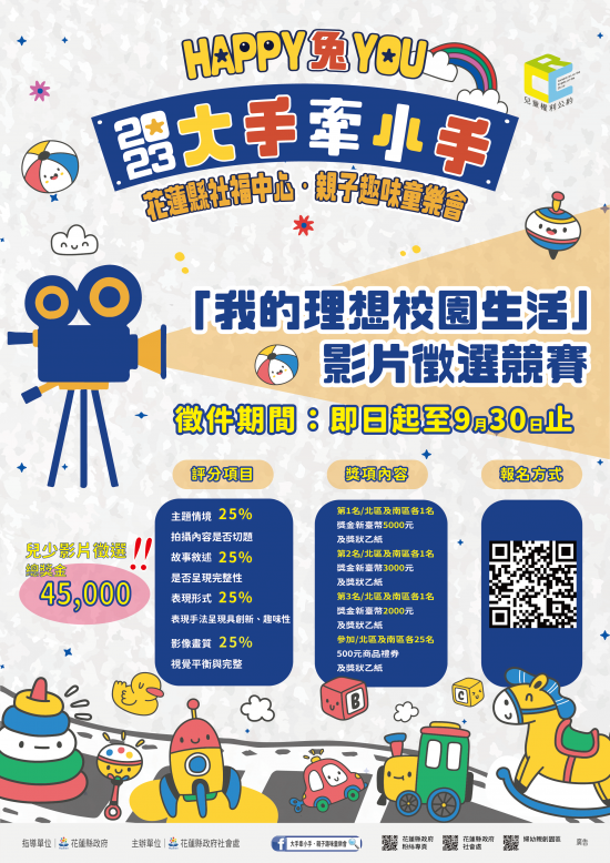 二、「我的理想校園生活」兒少影片活動徵選,徵件時間:即日起至9月30日截止收件。