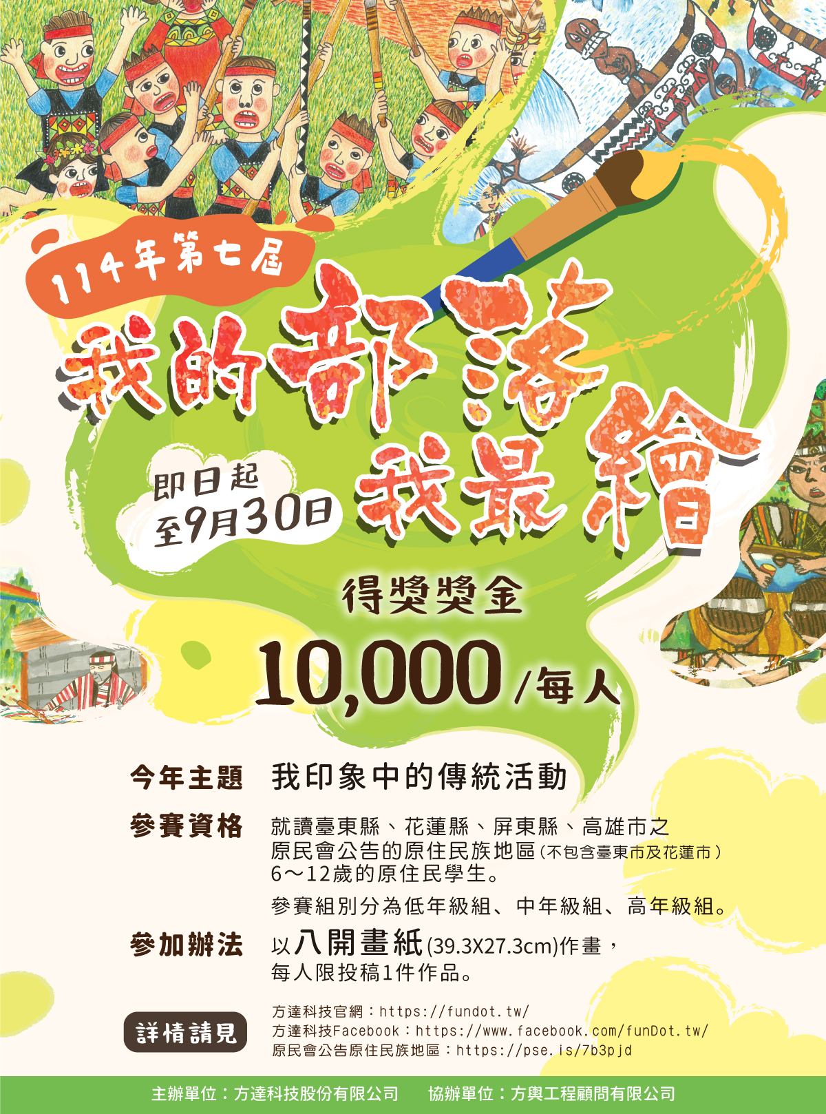 | 主旨: | 有關114年度第七屆「我的部落我最繪」繪畫比賽相關日期及辦法,惠請協助公告並鼓勵學生踴躍參與,請 查照。 |