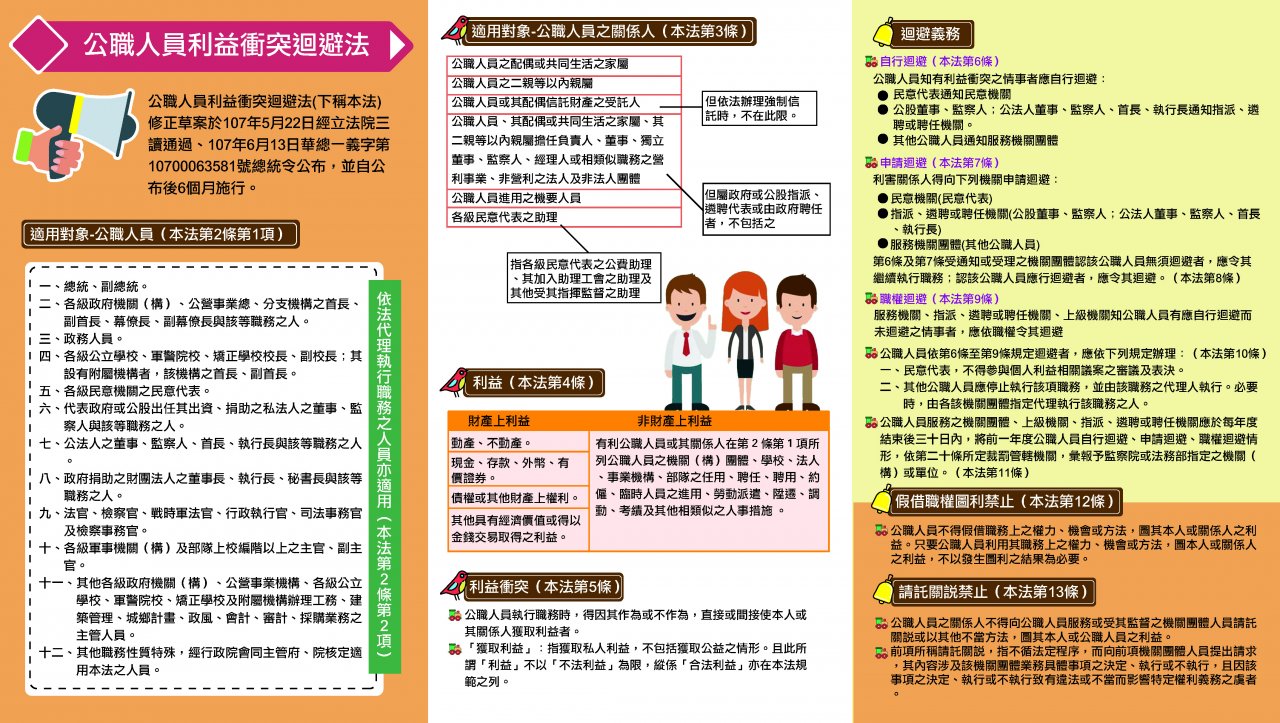 轉知學校同仁應確實遵守公職人員利益衝突迴避法(下稱本法),遇有利益衝突時應即自行迴避,如附件。