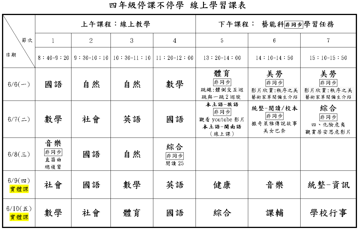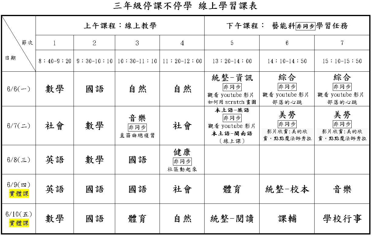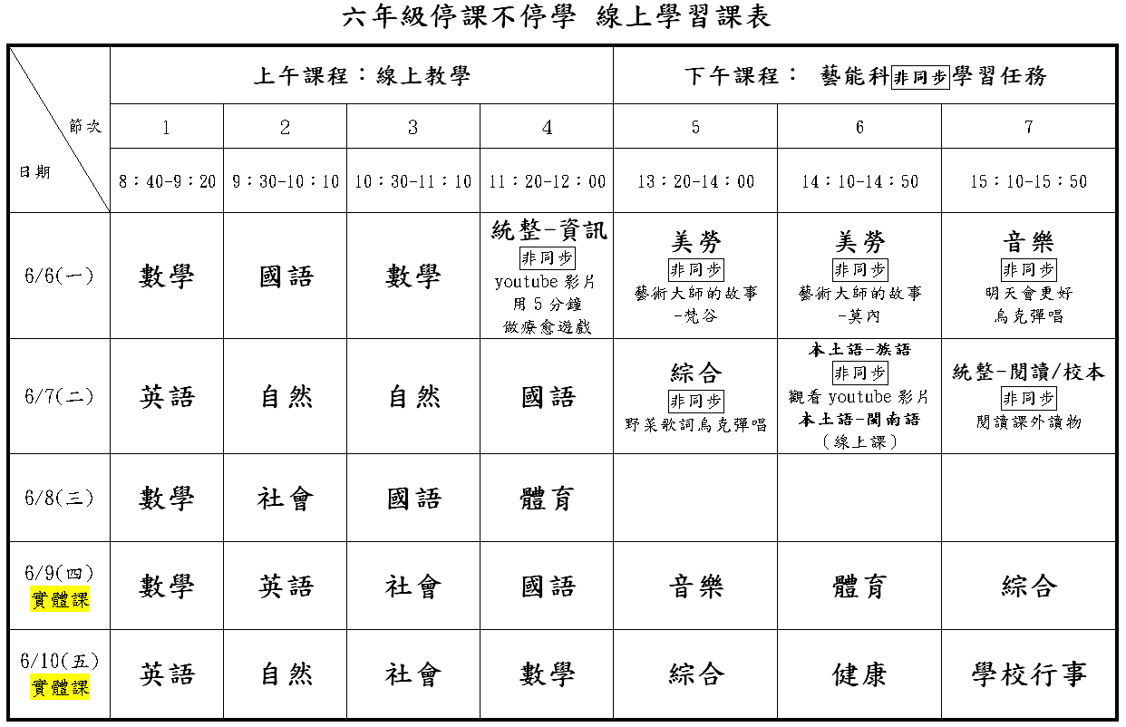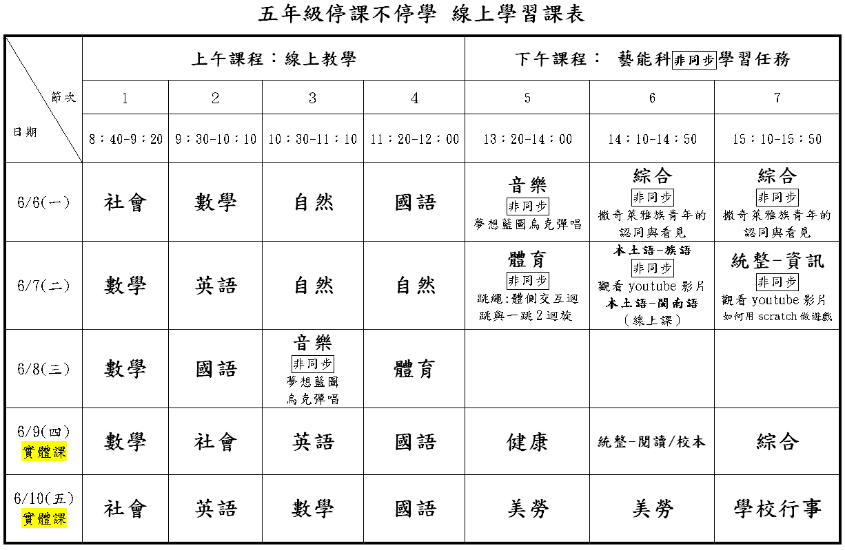 國福行事曆及課程計畫
