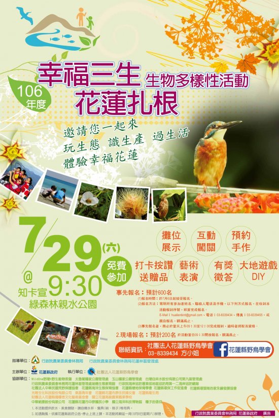 活動名稱:106 年度幸福三生花蓮扎根生物多樣性活動