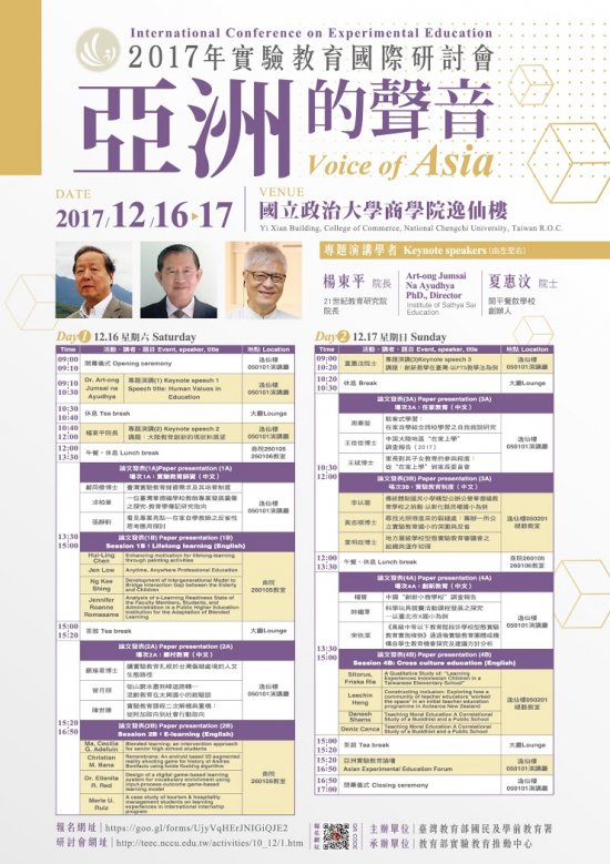 | 主旨: | 轉知國立政治大學辦理之「實驗教育國際研討會」議程及報名資訊等,請轉知相關人員踴躍參加,請查照。 |