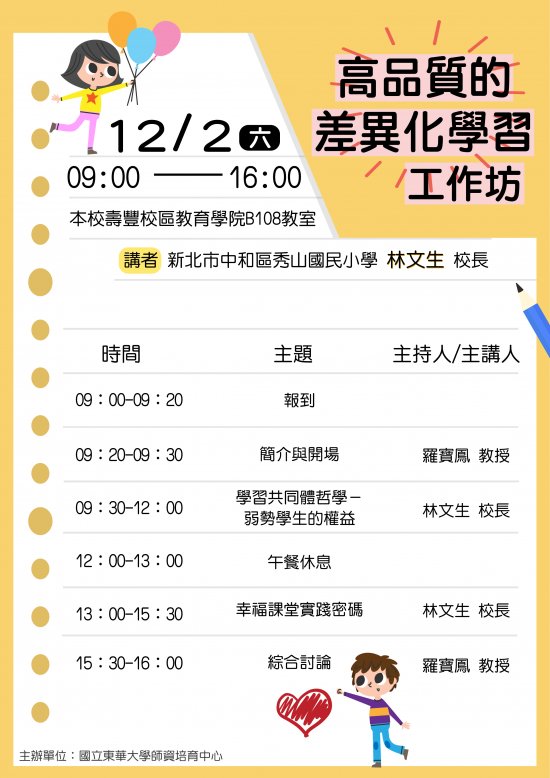 | 附件: | 高品質差異化學習工作坊_六、高品質差異化學習工作坊_日 |