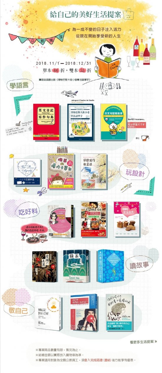 有關全國公教員工網路購書優惠方案107年11月專屬活動訊息,請查照轉知所屬參考利用